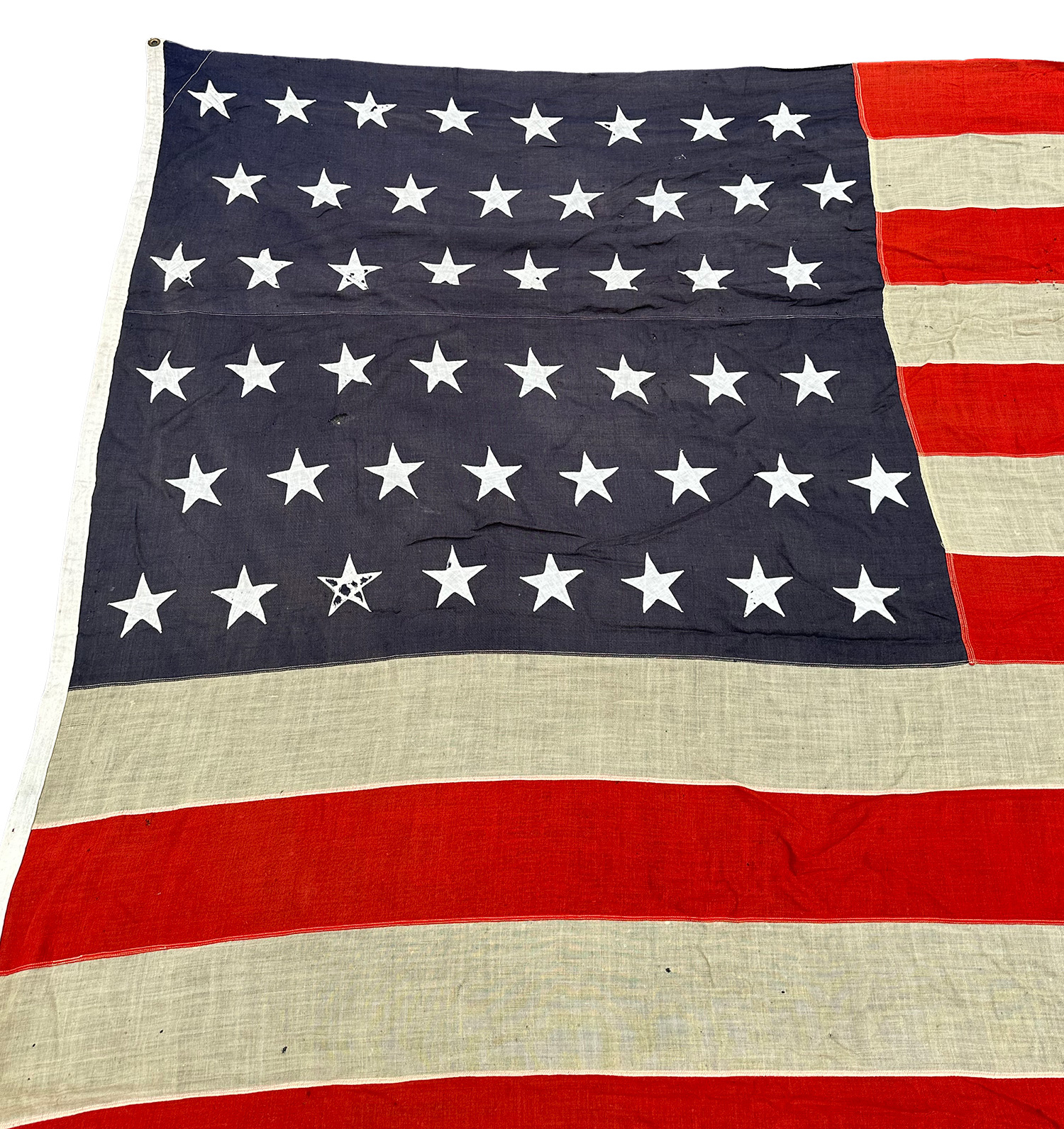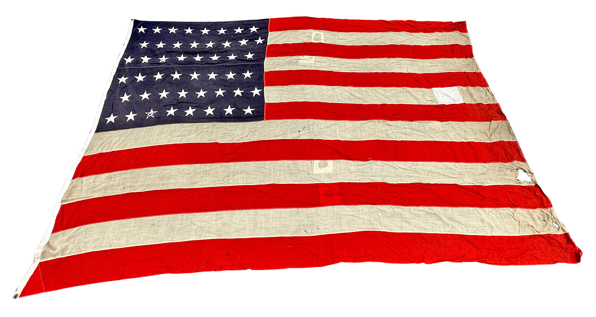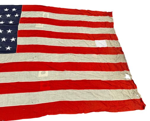Large Vintage 1930's-1950's United States 48-Star Flag. 84" x 132" (7Ft x 11Ft). Some repairs, tears, and fabric loss.