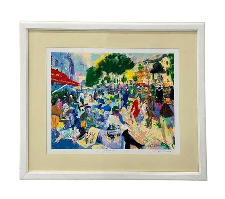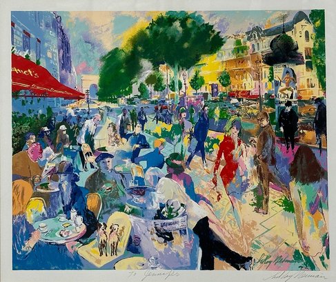 Leroy Neiman Serigraph "Cafe Fouquet's". Signed and dedicated in pen by the artist. Framed. Its not examined outside of the frame but appears to be in Very Good/Excellent Condition. The frame has some dirt and marks. 34" x 39" (frame)