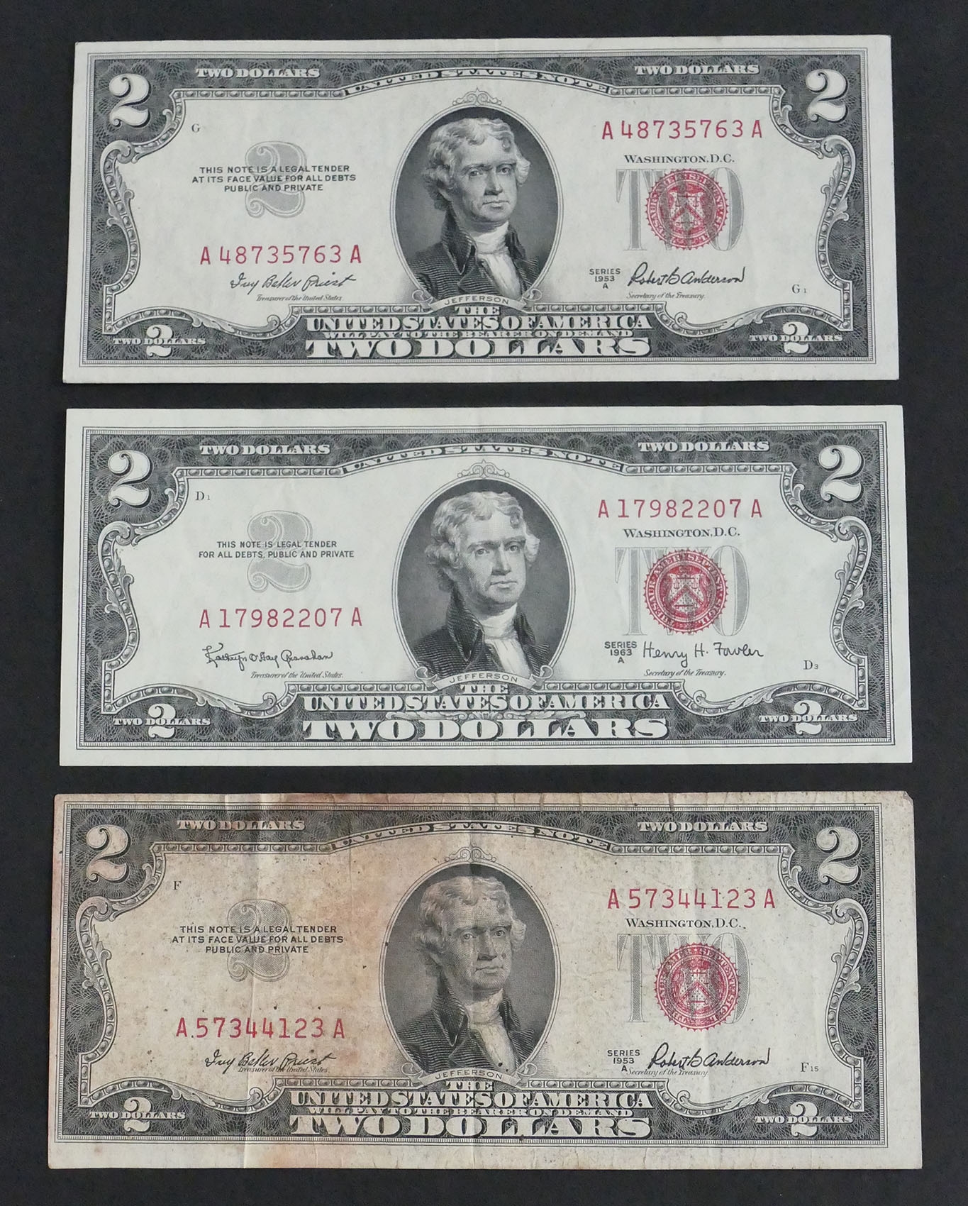 Lot Of 3 - 1953A & 1963A $2 US Legal Tender Notes. Comes in plastic bill holders.
