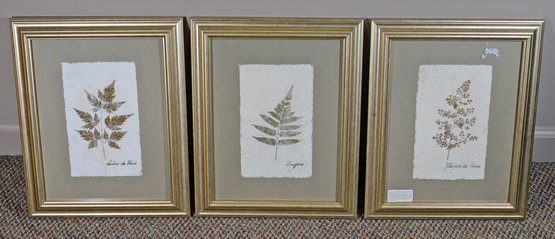 Lot Of 3 - Framed Leaf Prints On Paper. Nice decorative pieces in matching frames. 12.5" x 16"