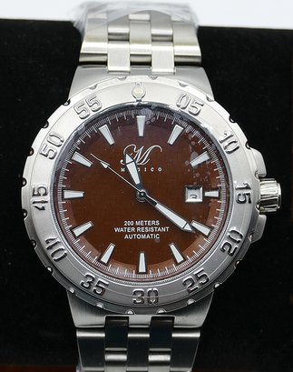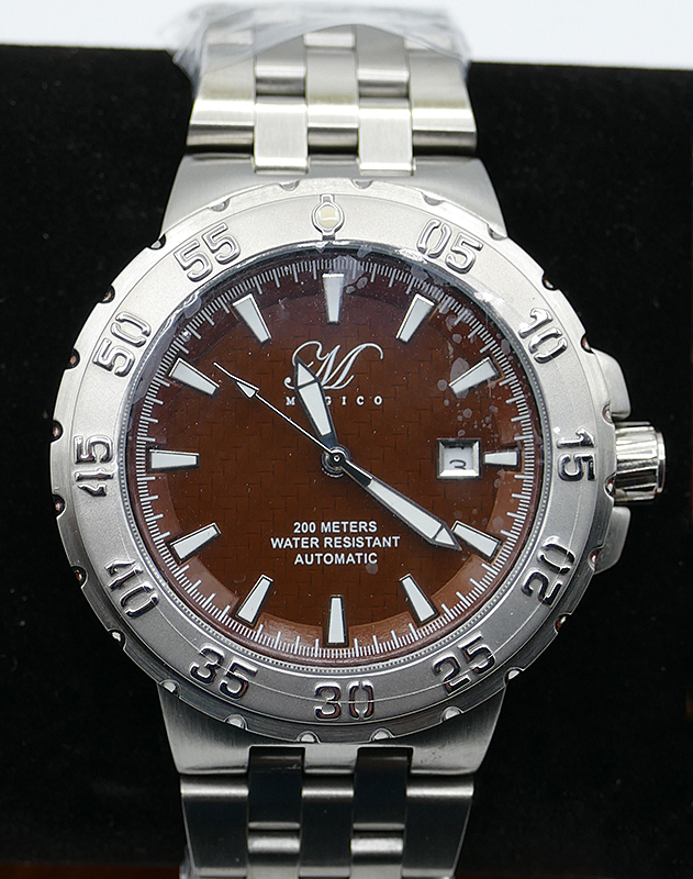 Magico Men's 20001-44 Stainless Steel Automatic Divers Wristwatch. 200M Water Resistant. Never Worn - In New Cosmetic Condition. Still has the tag attached and the factory plastic on the face and band. Excellent.