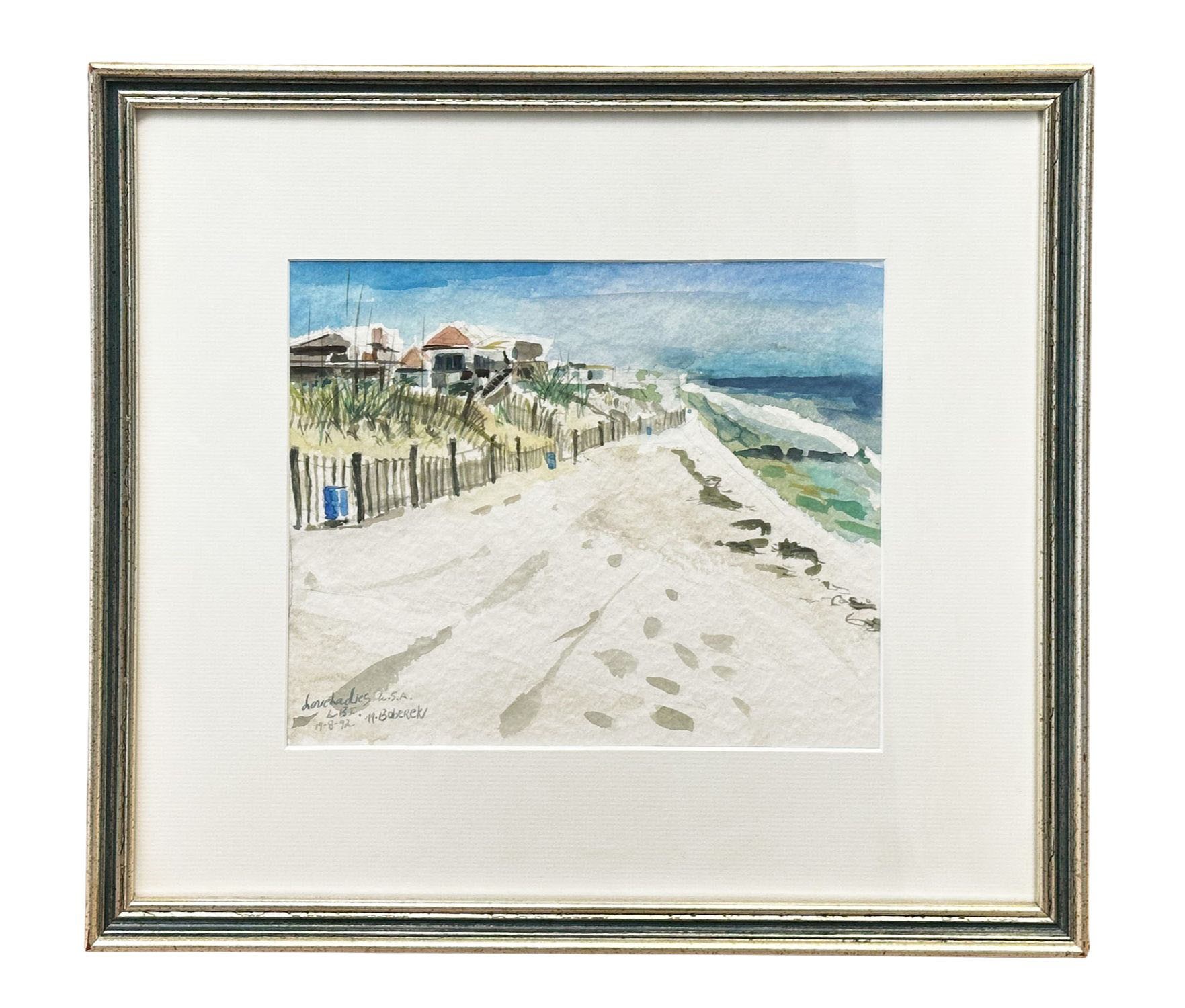 Margaret Boberek (American B. 1949) Original Watercolor Beach Scene On Paper. Nicely Framed; Signed L/l, also dated and possibly titled by the artiost. Margaret has lived in Italy since 1970 and has work in design for some of Italy's largest fashion houses. In Very Good Condition. 14" x 16" (framed)