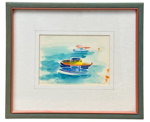 Margaret Boberek (American B. 1949) Original Watercolor On Paper "Porto S. Angelo Ischia" (1996). Nicely Framed; Signed, titled, and dated by the artist. Margaret has lived in Italy since 1970 and has work in design for some of Italy's largest fashion houses. In Very Good Condition. 11" x 13" (framed)