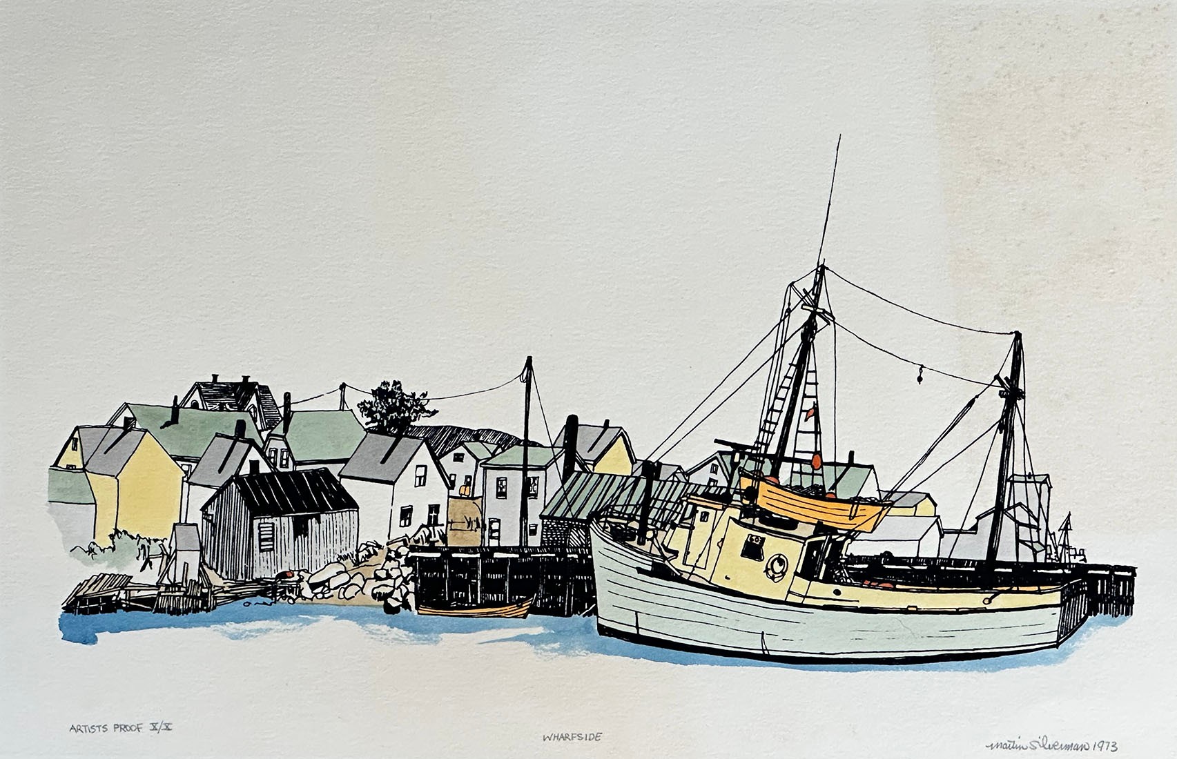 Martin Silverman (b. 1950) lithograph "Wharfside" - Nautical. Artist's Proof (Edition of 10). Some browning and discoloration of paper. 17.5" x 13.25" (paper size)