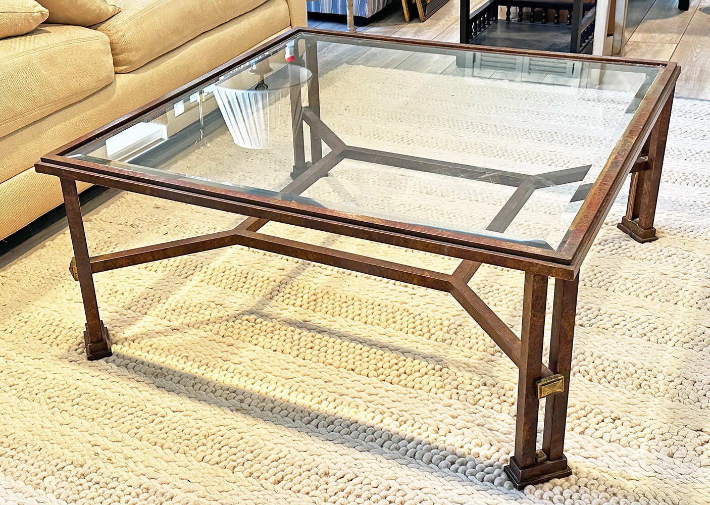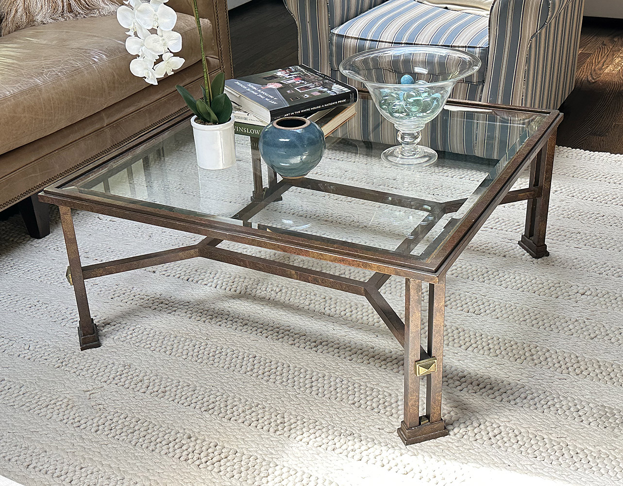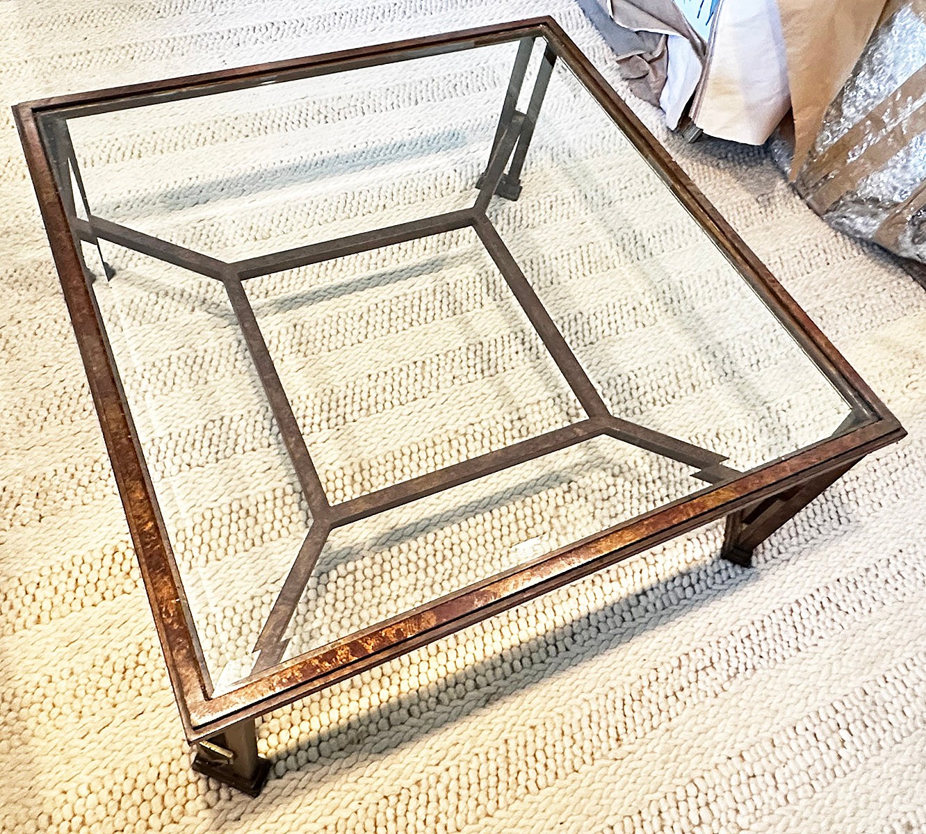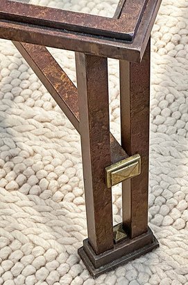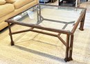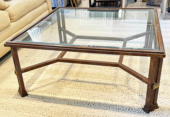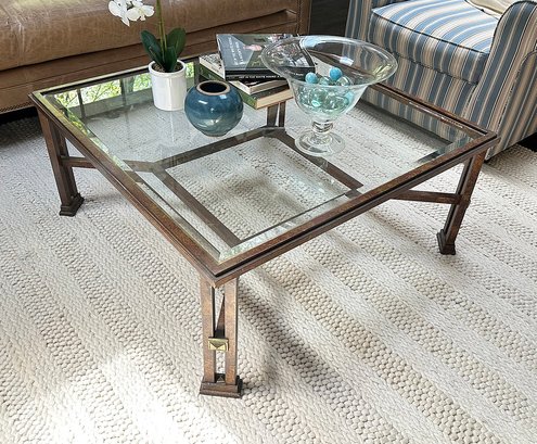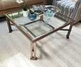 Metal And Glass Coffee Table. In Good Condition. 38.5" Square, 17" Tall.