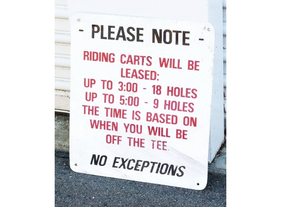 Metal Golf Course Sign. 18" x 16". Some wear and marks. Great for the office or man cave.