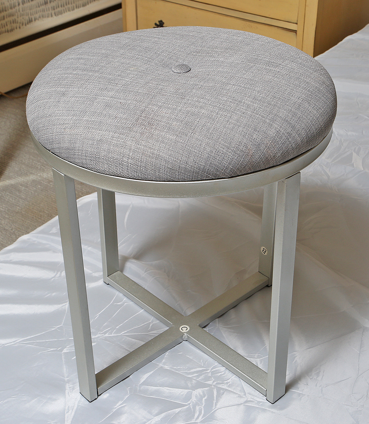 Mirrored Vanity / Console Table With Stool. Both appear to be in very good condition. Measurements: 42"w x 18"d x 31"h (vanity) / 15" x 15" x 17"h (stool)