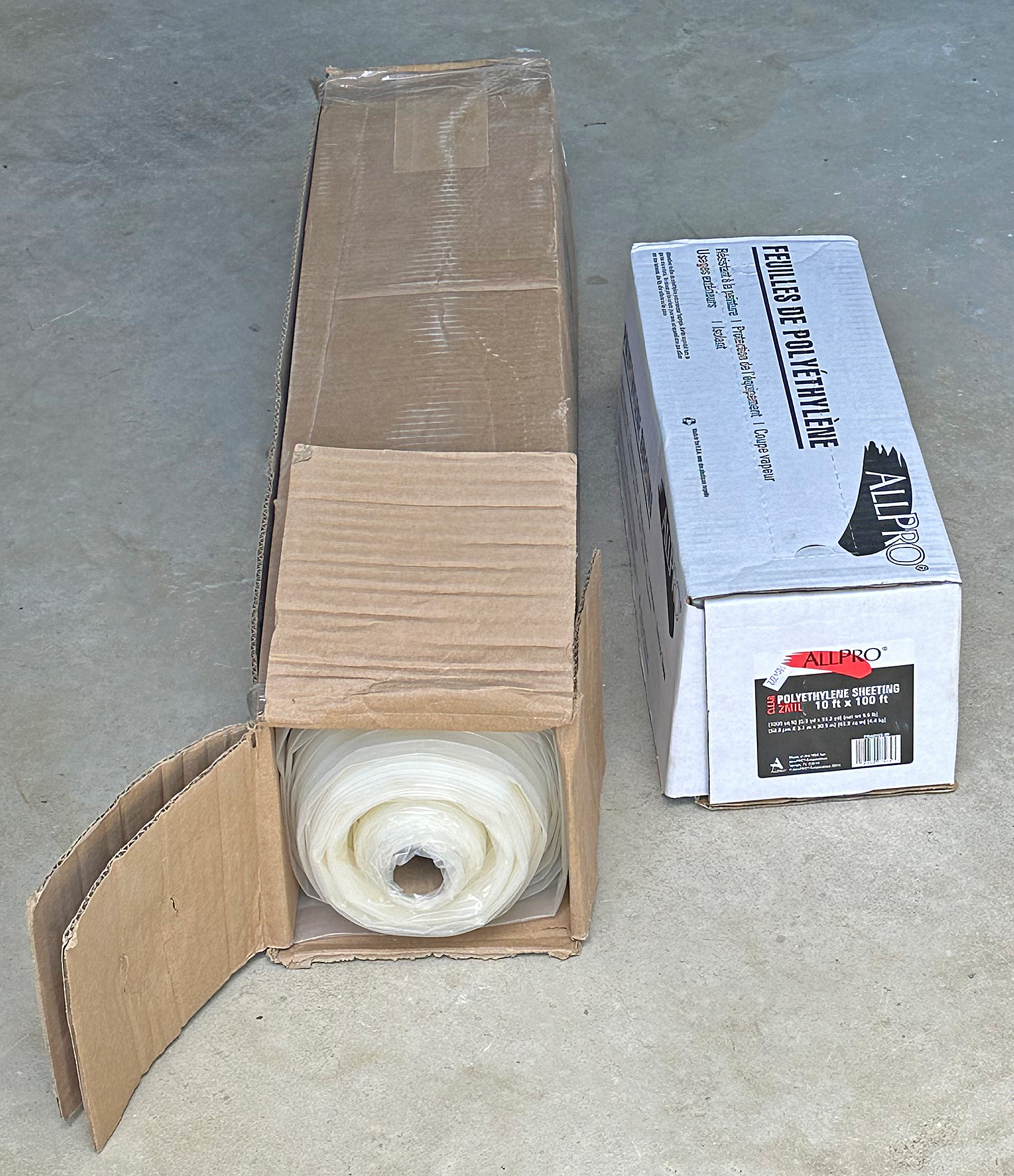 Polyethylene Sheeting - 100FT X 10FT (6 Mil) And (2 Mil). Both are in the boxes and the AllPro 2mil sheeting is New in the sealed box. Original cost for both was over $100.