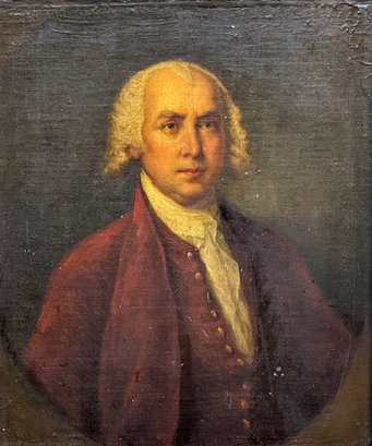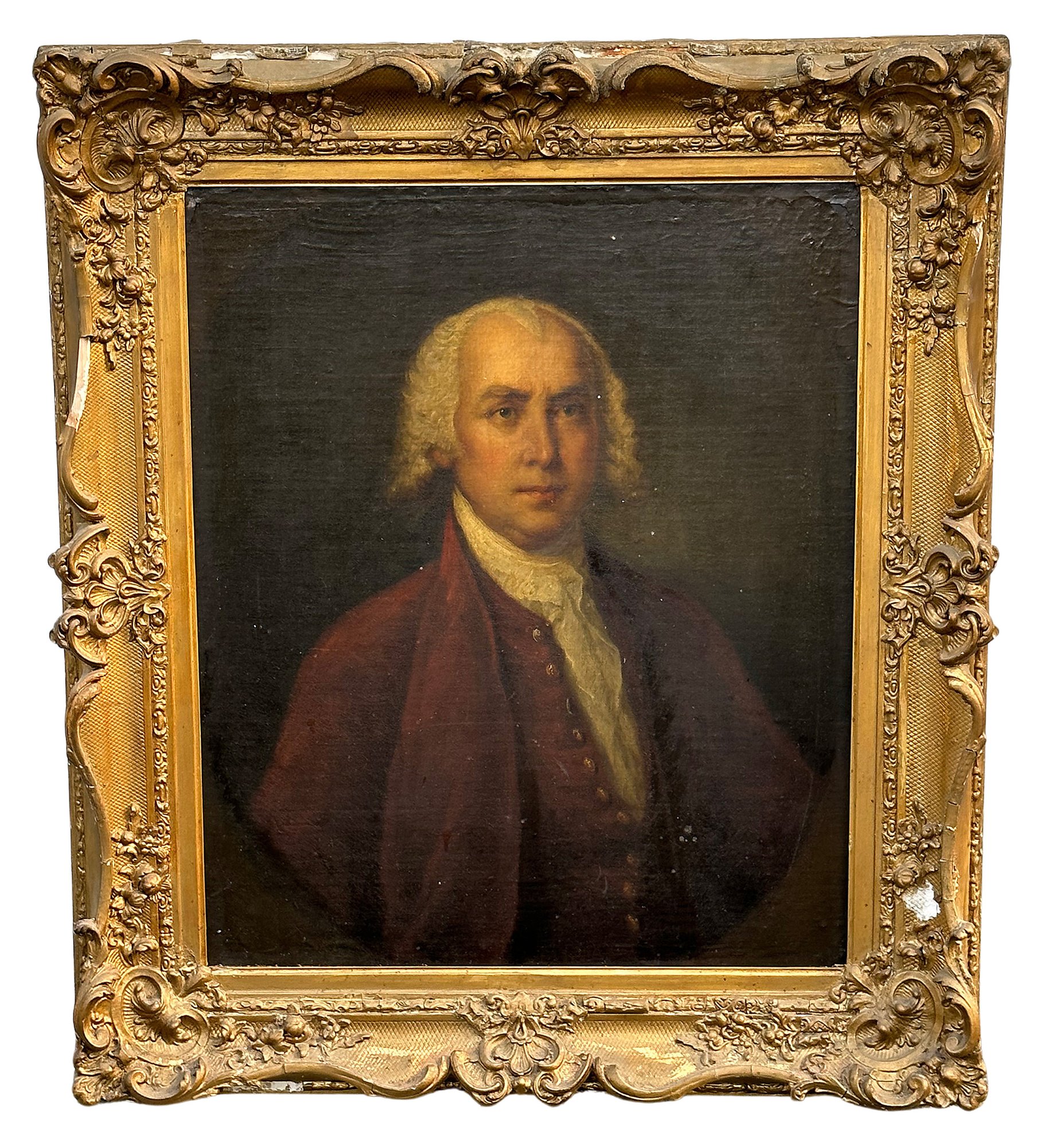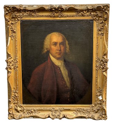 Original 19th C. Oil On Canvas Painting - Portrait. American School. In good condition with some wear and aging. Frame is fair with some missing and damaged plaster.