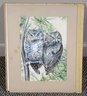 Original Gouache And Watercolor Painting of 2 Owls. Very detailed. Unframed. In Good Condition. 11" x 14".