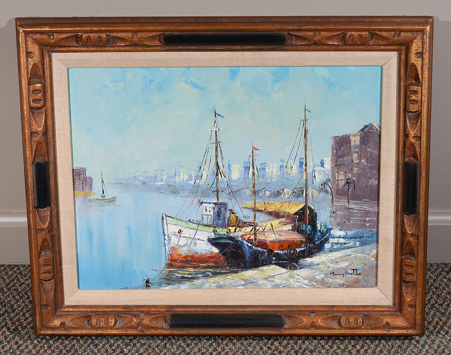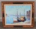 Original Mary Botto Oil On Canvas - Seascape / Ship. In a vintage carved frame. 16" x 20". In Very Good Condition.
