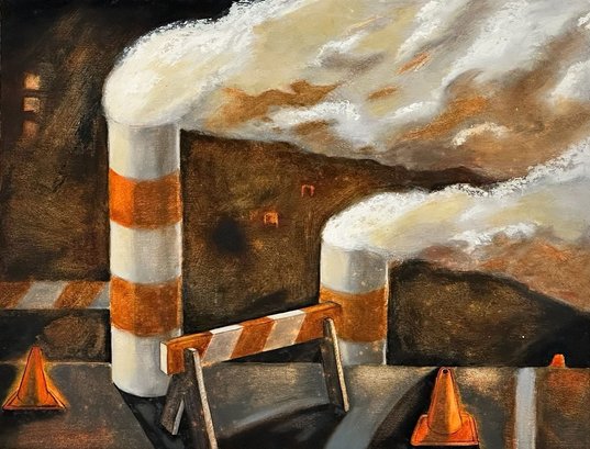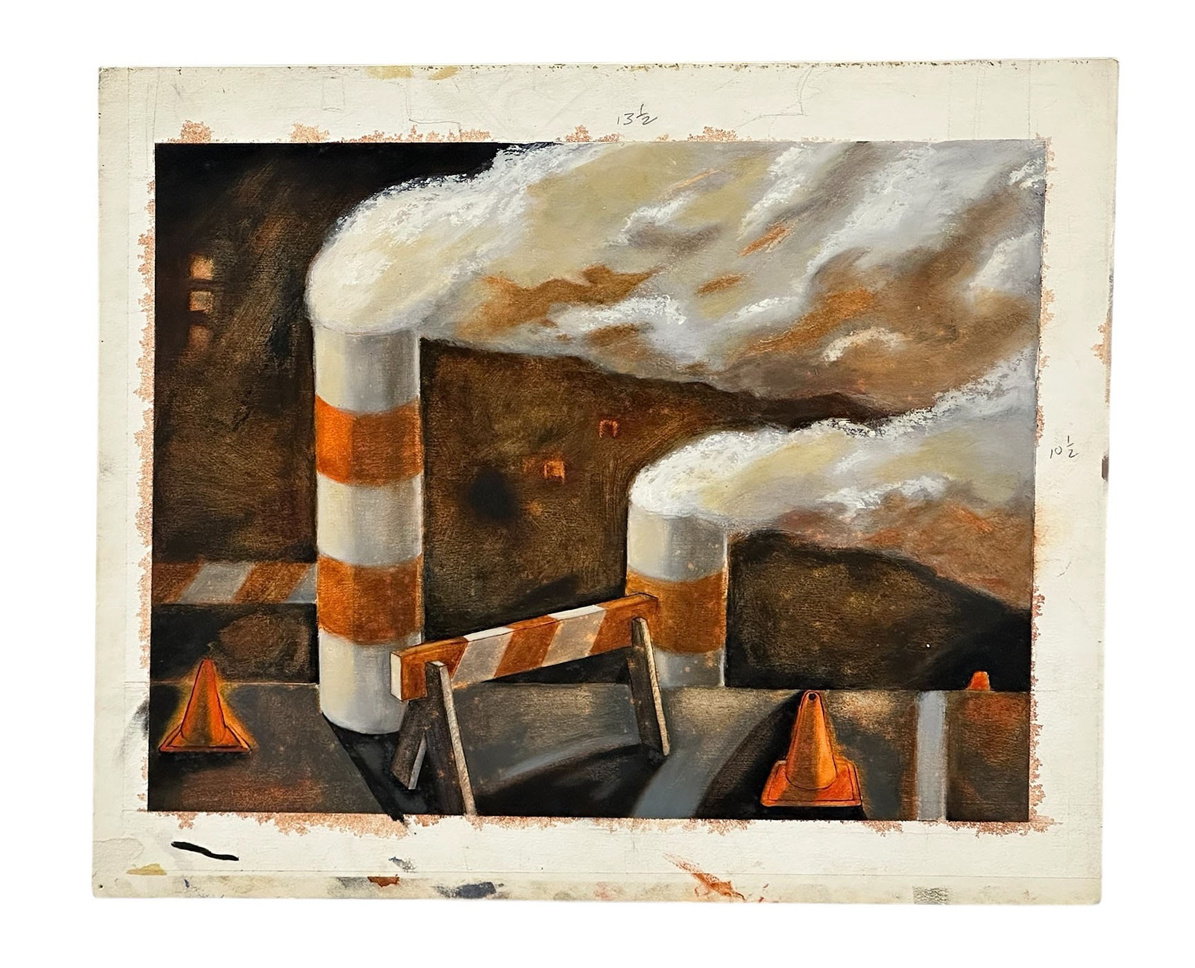 Original Oil On Board - Attributed To Andrea Vandoni (Italy, B. 1972). Unsigned. Possibly used for a marketing/advertising project that Tony Palladino or another agency was creating. Will look great framed. 13.25" x 15.875" (board)