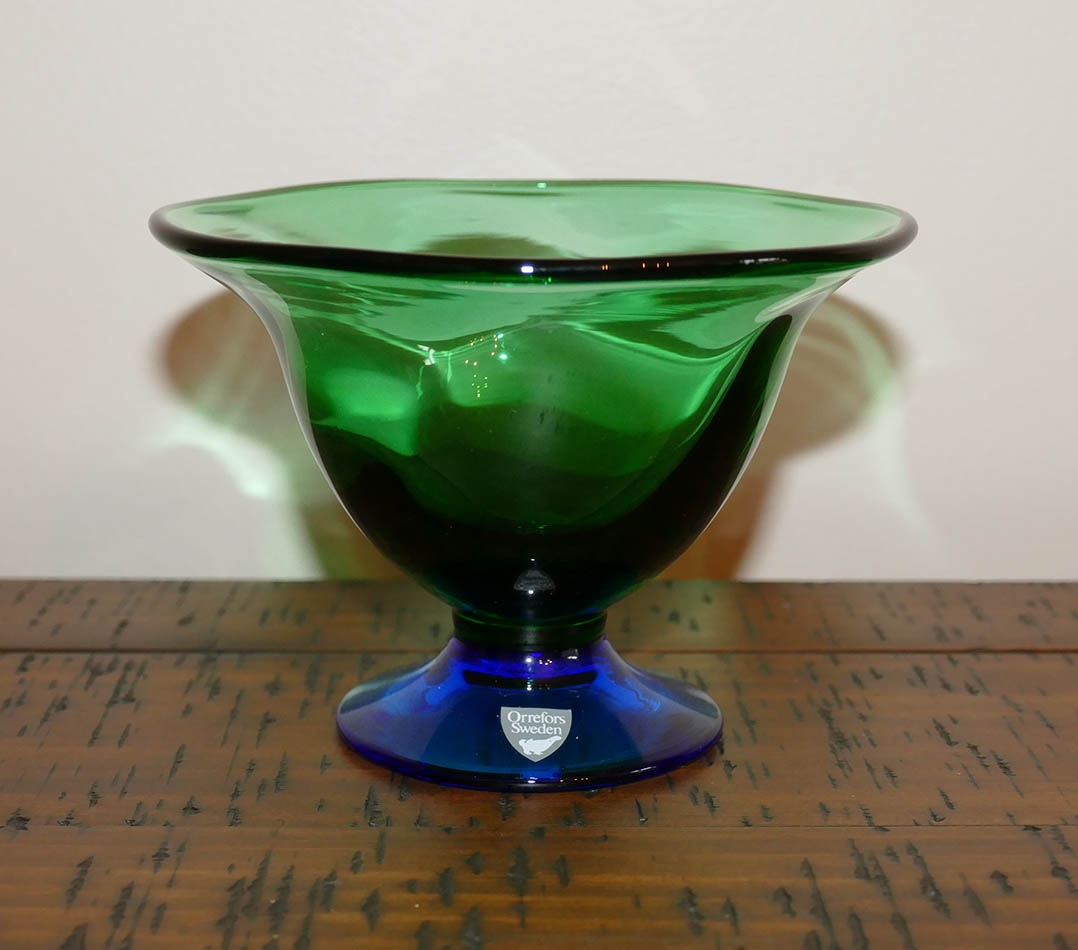 Orrefors Swedish Blue & Green Glass Bowl. Designed By Erika Lagerbielke.