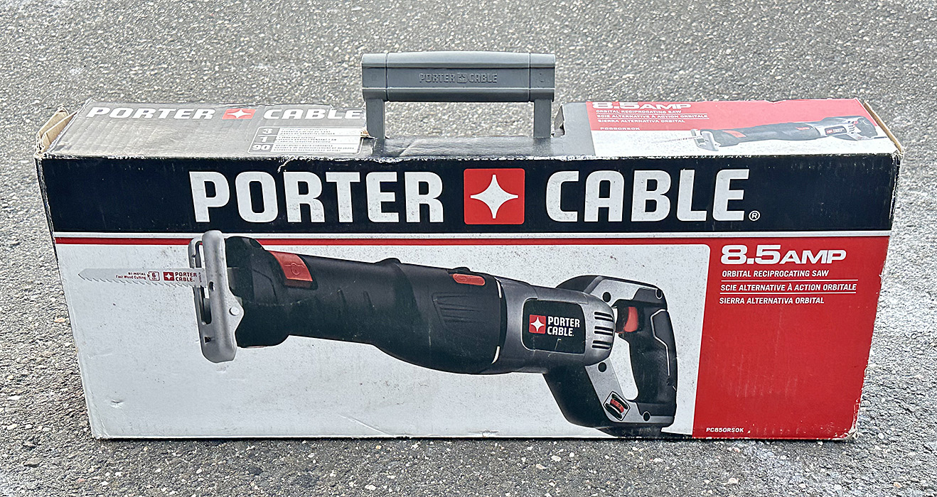 Porter-Cable 8.5 Amp Corded Orbital Reciprocating Saw. Unused in the factory box. With hard case. 6-position, variable-speed dial maintains speed for multiple cutting tasks.