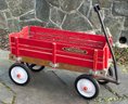 Radio Flyer Town & Country Red Wooden Wagon. Circa 1990's. 42"long x 18" x 20" (not including handle). In good condition.