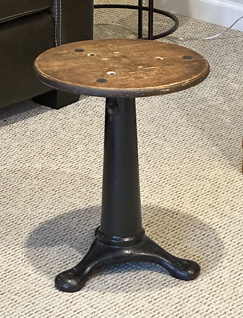 Rare Antique Cast Iron Sewing / Factory Stool. Wooden Seat. In Good Condition. 13.75"diameter, 16" Tall