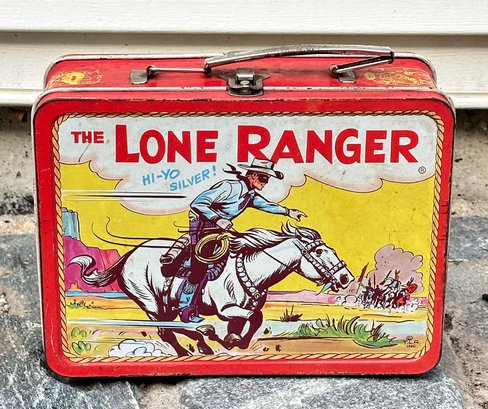 Rare Vintage 1950's Adco-Liberty Lone Ranger Lunchbox & original Thermos. Extremely rare to have both the thermos and lunchbox. In good overall condition with some edge wear; most of the graphics in front and back are present and in very good condition. The thermos also appears to be in good condition.