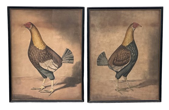 Pair Of Richard Gilson Reeve (British, 1803-1889) Hand Colored Aquatints - Fighting Cocks. Artist: Benjamin Marhsall (English, 1768-1835). Framed. Not inspected outside of the frame but appear to be in Good Condition. Frame Size -13.7" x 17.75"