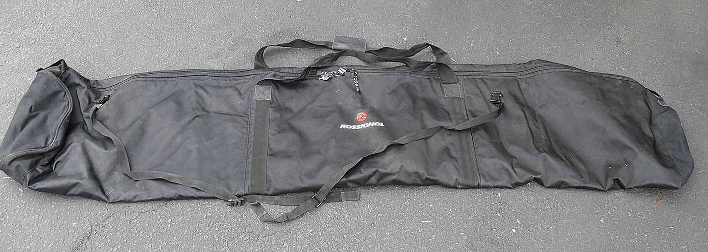 Rossignol Ski Travel Bag With Lock (Key Included). 80" Long. Appears to be able to fit 2-3 pairs. In Good Cosmetic Condition.