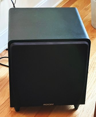 Protege FS10 10 Dual-Drive Powered Sub With 250 Watt Amp. Includes a 10-inch driver, 10-inch passive radiator and 250-watt Class D amp. In Very Good Cosmetic Condition. Dimensions 14" x 14" x 15". The original cost was around $500.