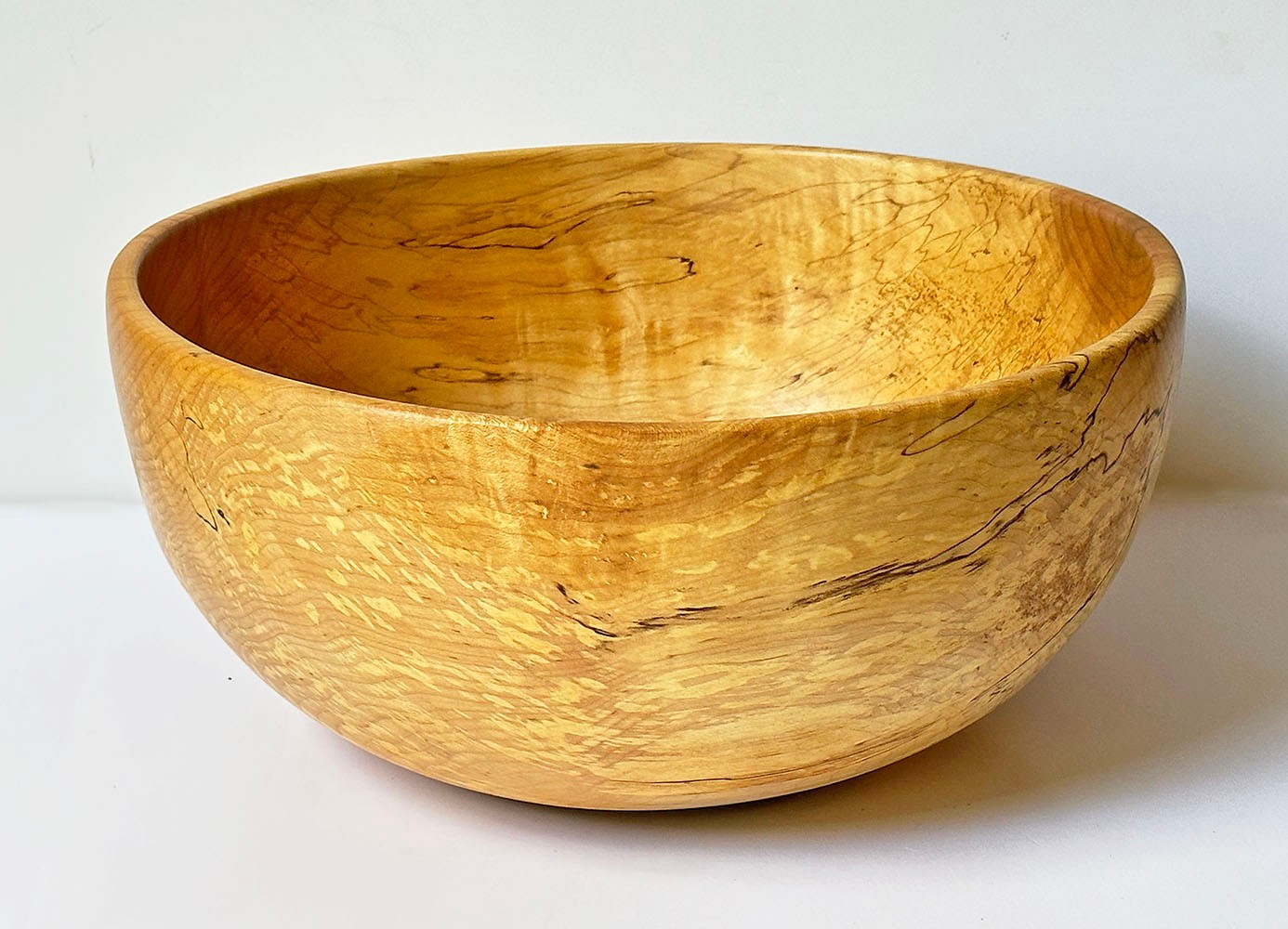 Sam Scherer (MA) Spalted Maple Wood Turned Bowl. In Excellent Condition; Great Craftsmanship. 12.25" in diameter, 6.5" tall.