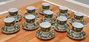 Set Of 11 Pfaltzgraff Bella Donna Japan Tea 3.5" Footed Cups & Saucers. Timeless and cheerful pattern. In Very Good Overall Condition.