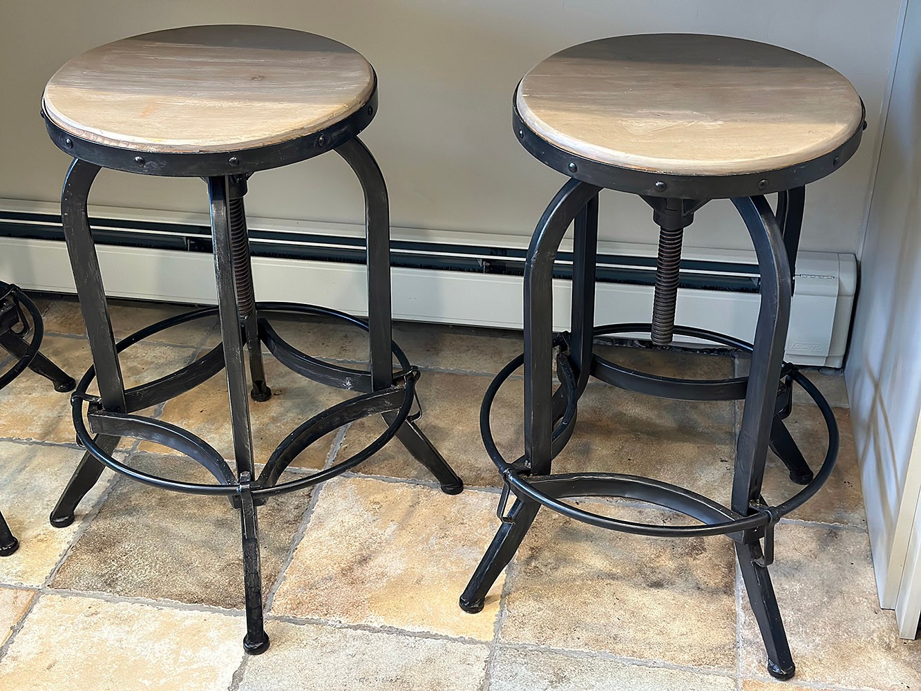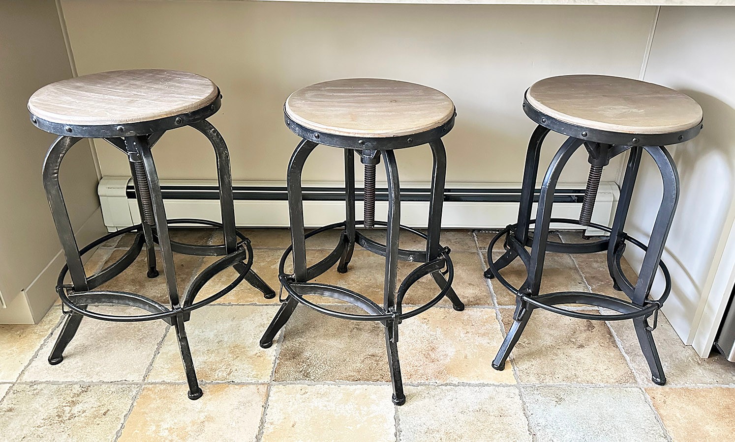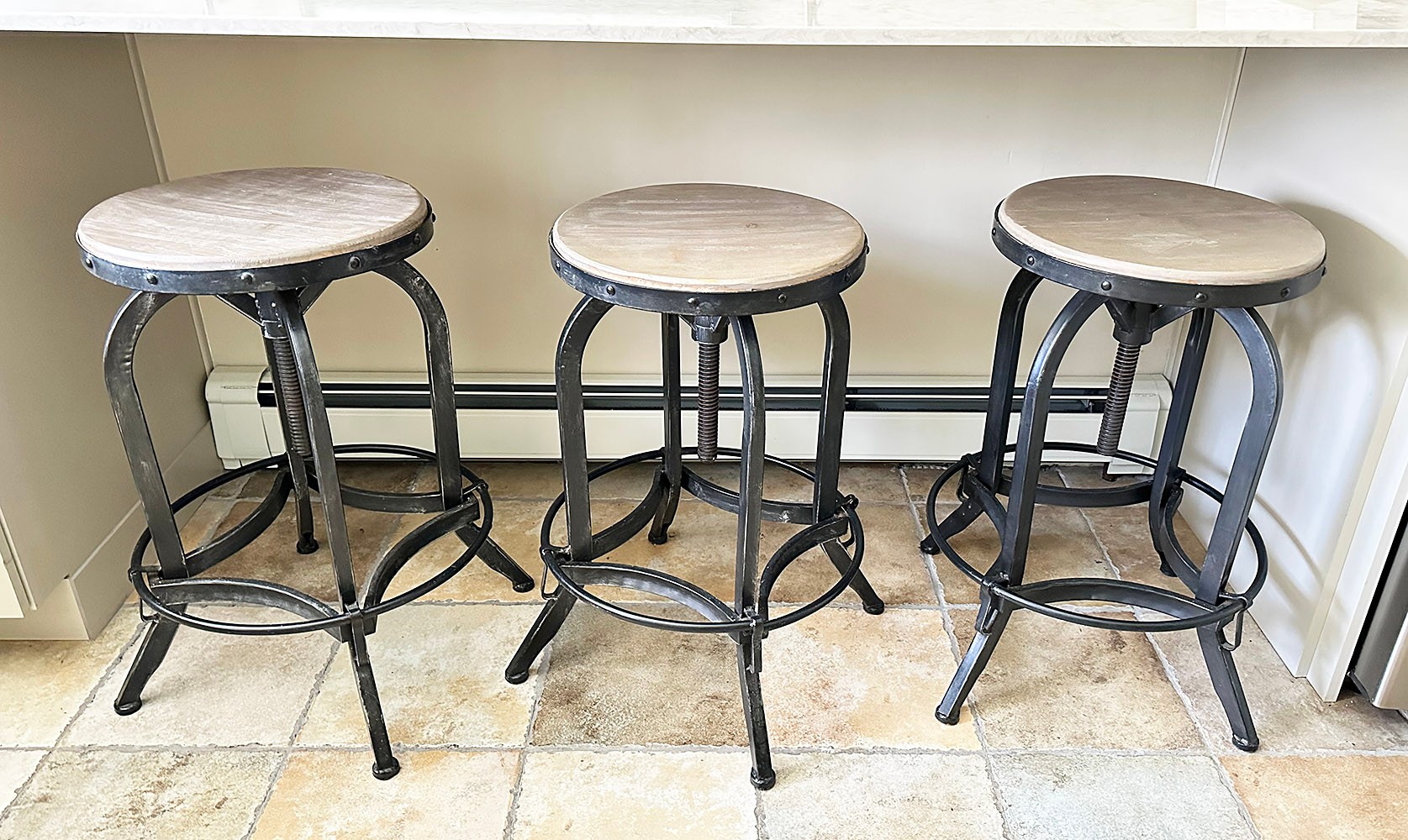 Set Of 3 Industrial Modern Adjustable Barstools