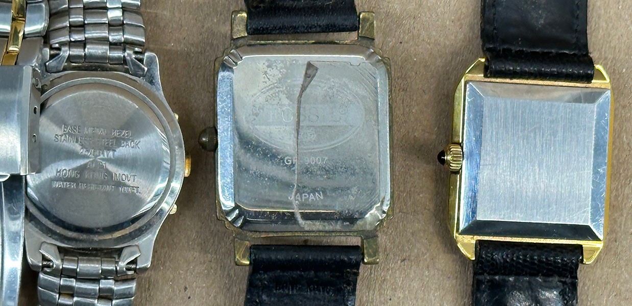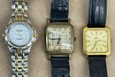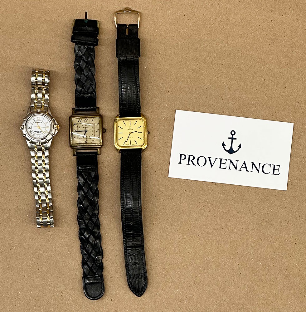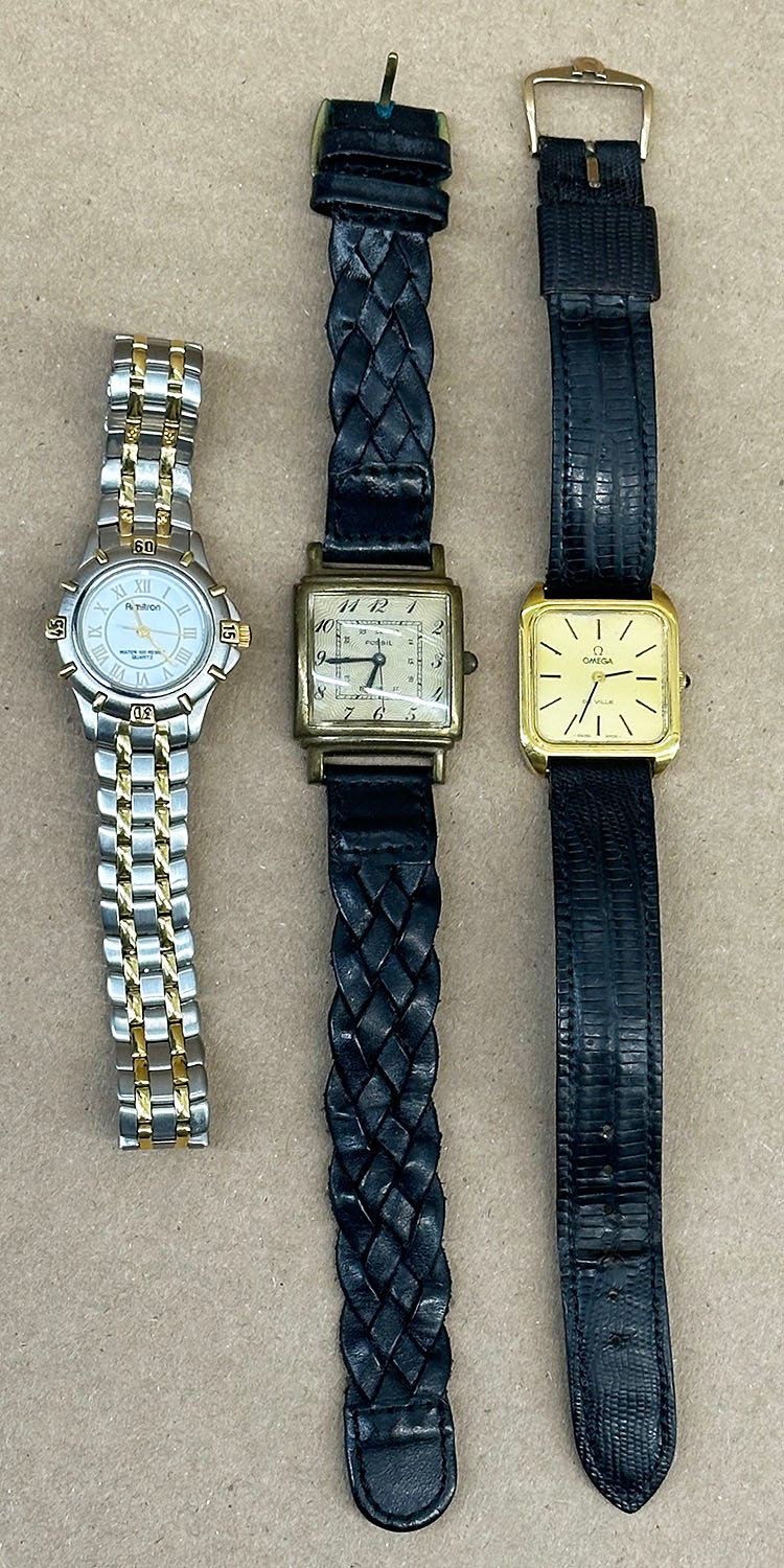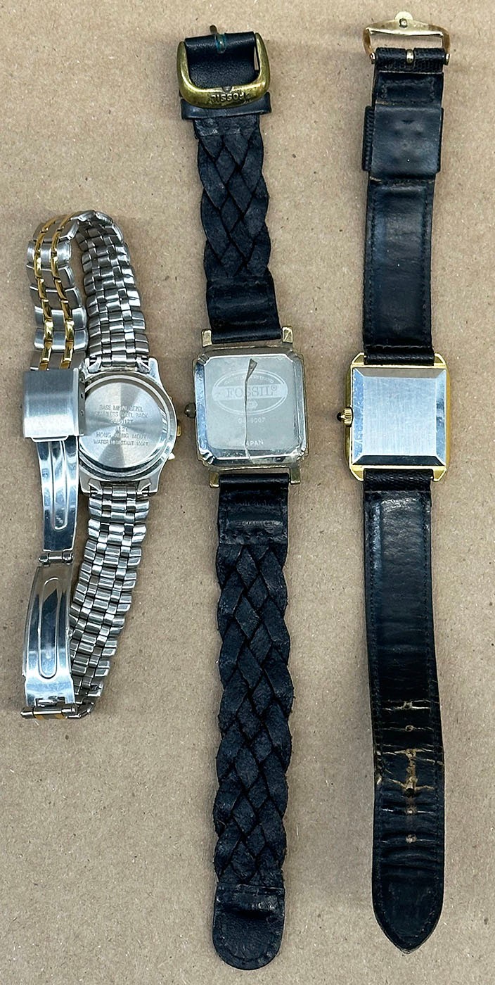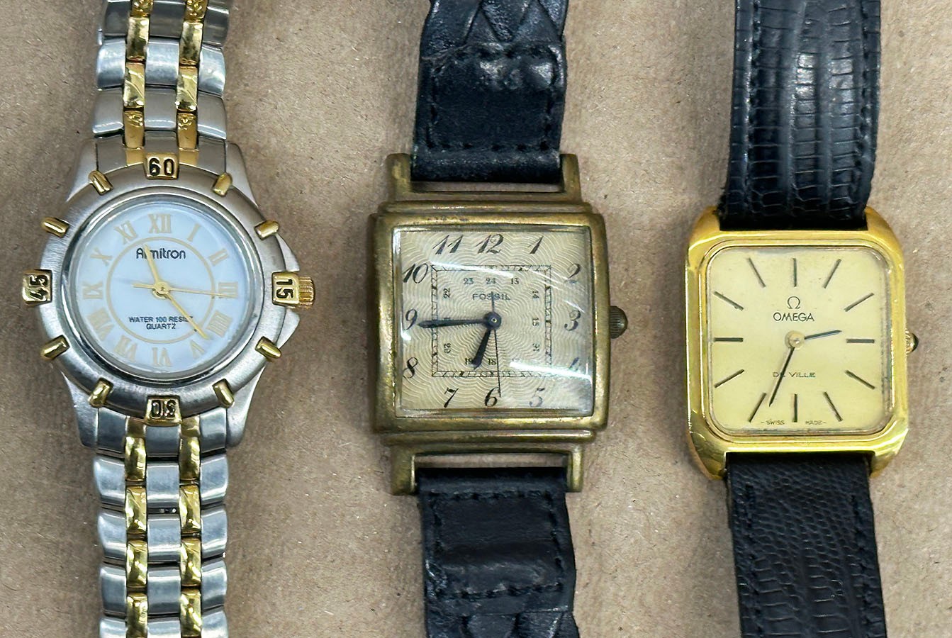Set Of 3 Ladies Wristwatches - Omega, Fossil, And Armitron. Untested. For size reference, the Fossil watch is 9" long