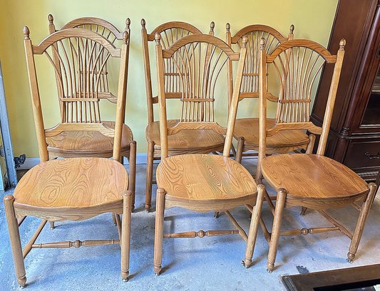 Set Of 6 Pennsylvania House Oak Wheat Back Dining Chairs. In Very Good Condition. 20" x 18" x 42"h, 18" seat height
