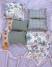 Set of 6 Throw Pillows. In Excellent, Unused Condition. A couple are from Pier 1 and still has the tags. Includes an extra pillow cover. The pier 1 pillow measure approximately 12" x 17"