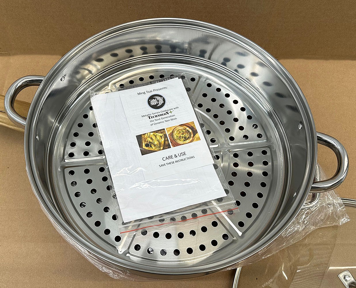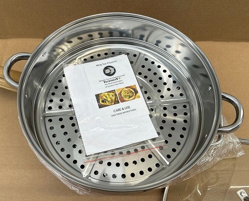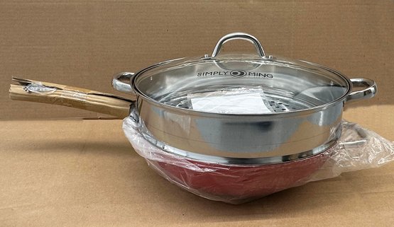 Simply Ming Ceramic Non-Stick Wok & Stainless Steamer Insert. New / Never Used. 14" diameter.