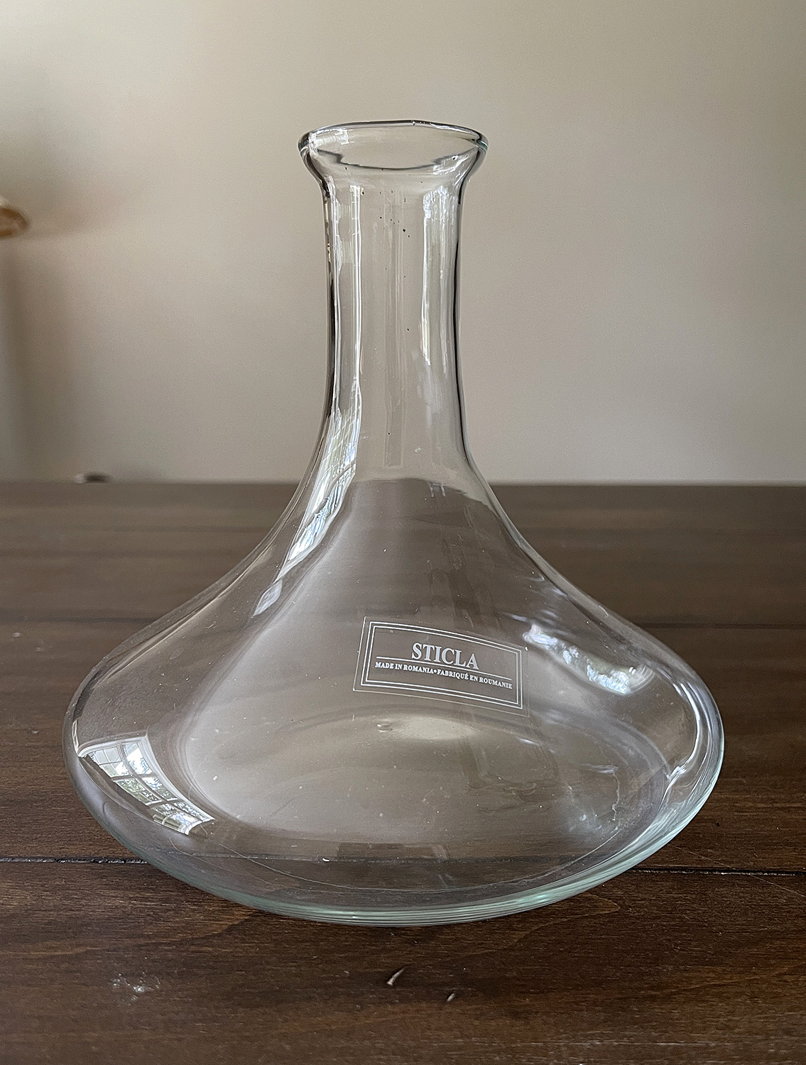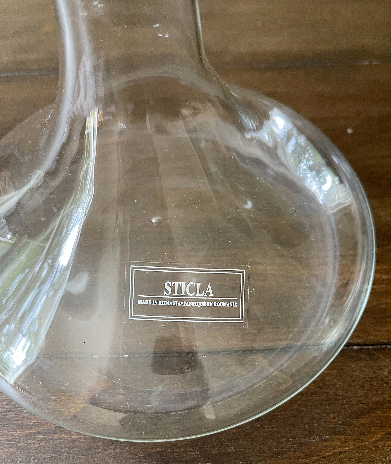 Sticla Romania Glass Wine Decanter. Great shape for oxidizing both vintage and new wines. 7.5"h x 7.5"w. In Very Good Condition.