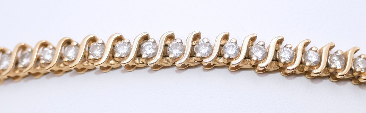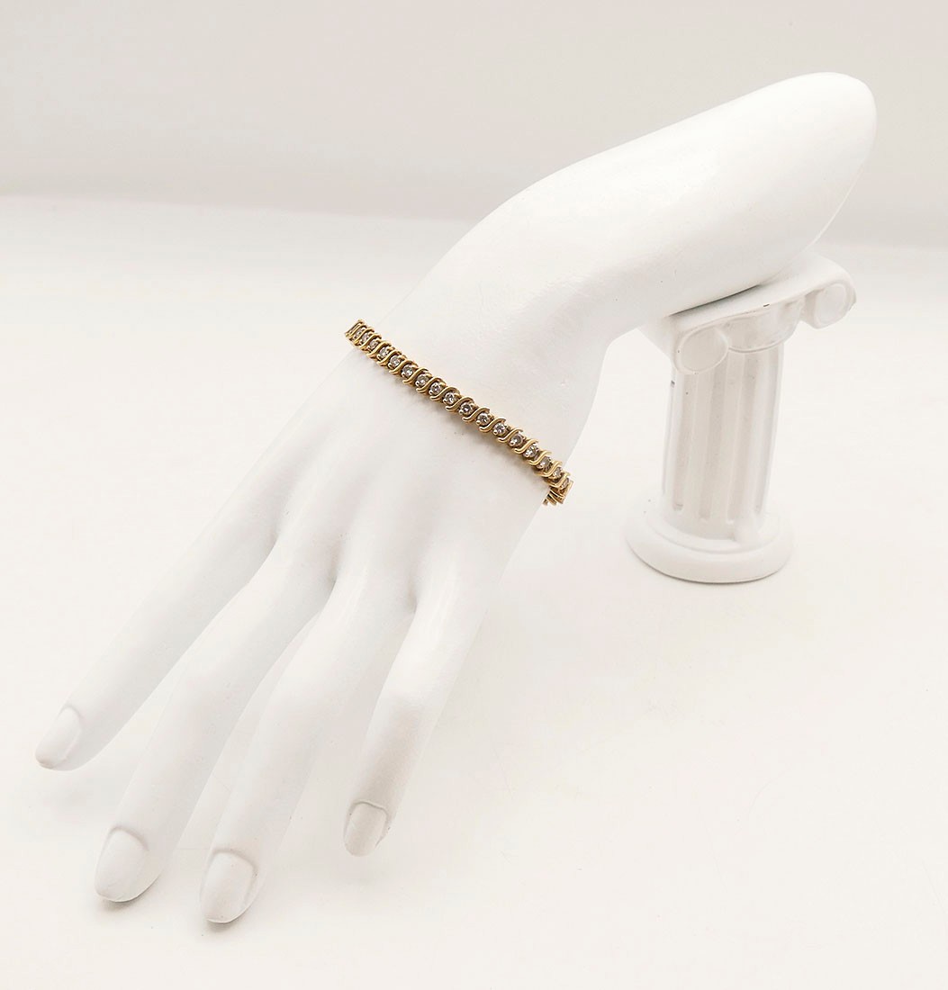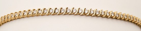 Stunning 14K Gold And Diamond Bracelet. 7.5" Long. In Excellent Condition. Marked "14K". Total Weight: 17.23 Grams (.55 Troy Ounces)