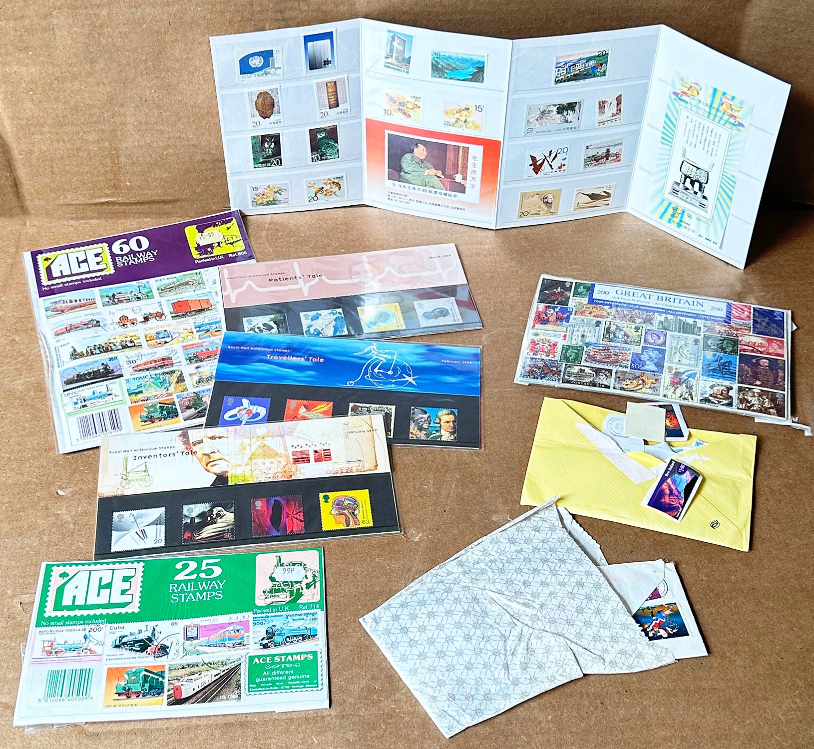 International Stamp Lot. Over 100 stamps in all. Includes sealed sets and loose stamps.