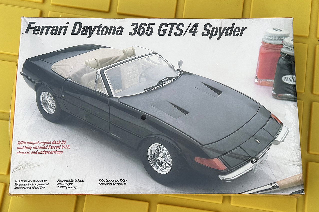 Testors/Italeri #230 Ferrari Daytona 365 GTS/4 Spyder Auto Model Kit - 1/24 Scale. This kit is never used and still factory sealed. Parts are in New condition.