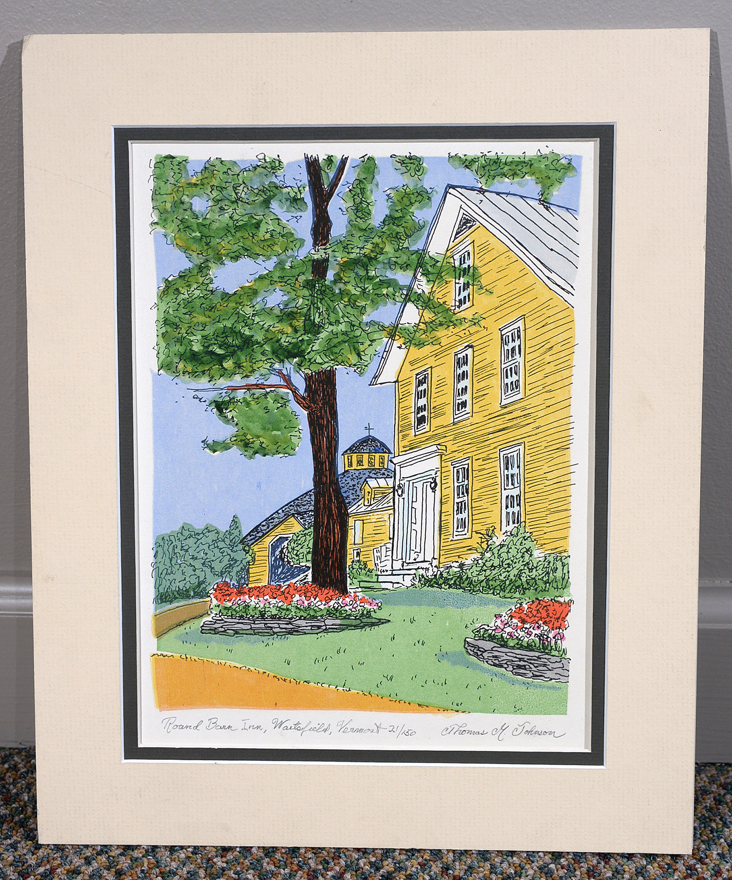 Thomas M. Johnson Print Of The Round Barn Inn (Waitsfield, VT). Editon Size: 150. In Very Good Condition. Unframed. 11" x 13.5"