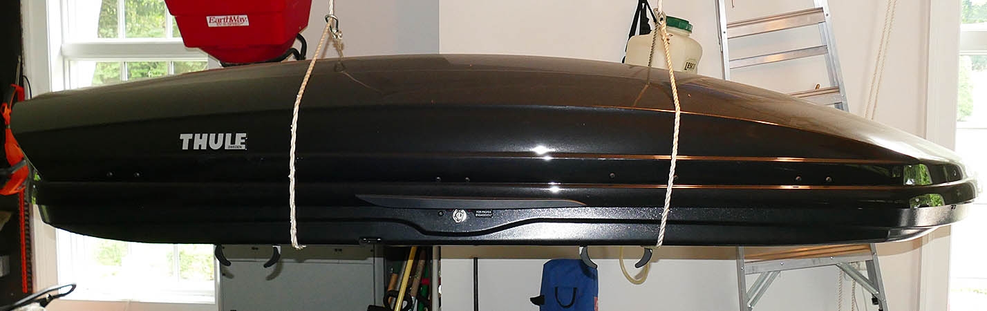 Thule Cargo Roof Box. We believe that this is their Sonic model and measures approximately 85" long, 35" wide, and 15" high. Holds a family of skis or snowboards. In Excellent Condition. Key included.