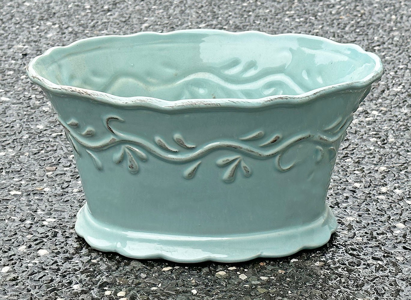 Turquoise Ceramic Planter / Pot. 11.5" x 9.5" x 6"h. In Good/Very Good Condition.