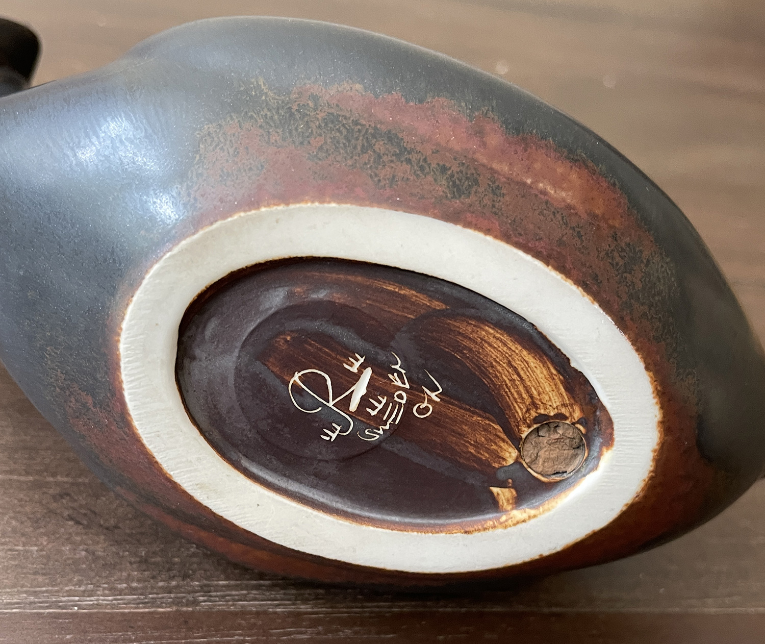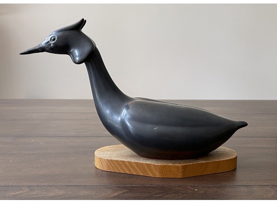 Gunnar Nylund Stoneware Grebe Sculpture For Rorstrand. Circa 1940'S-1950'S. With base.