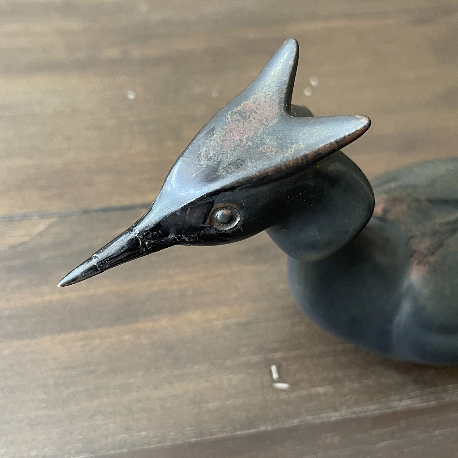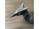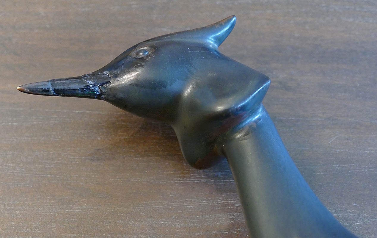 Measurements: 10.25" x 6" x 9". The beak has been repaired.