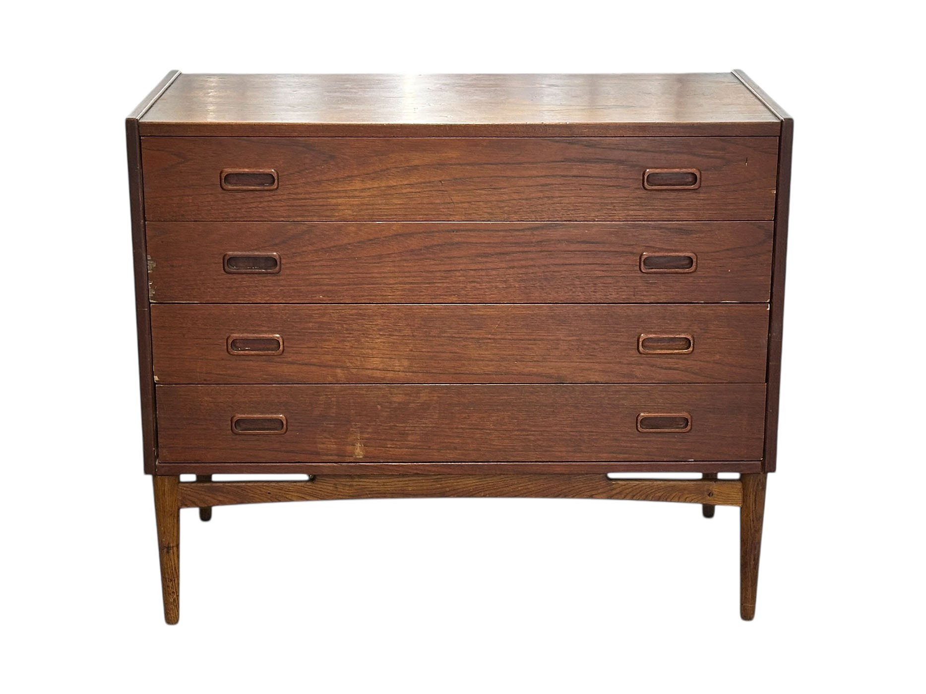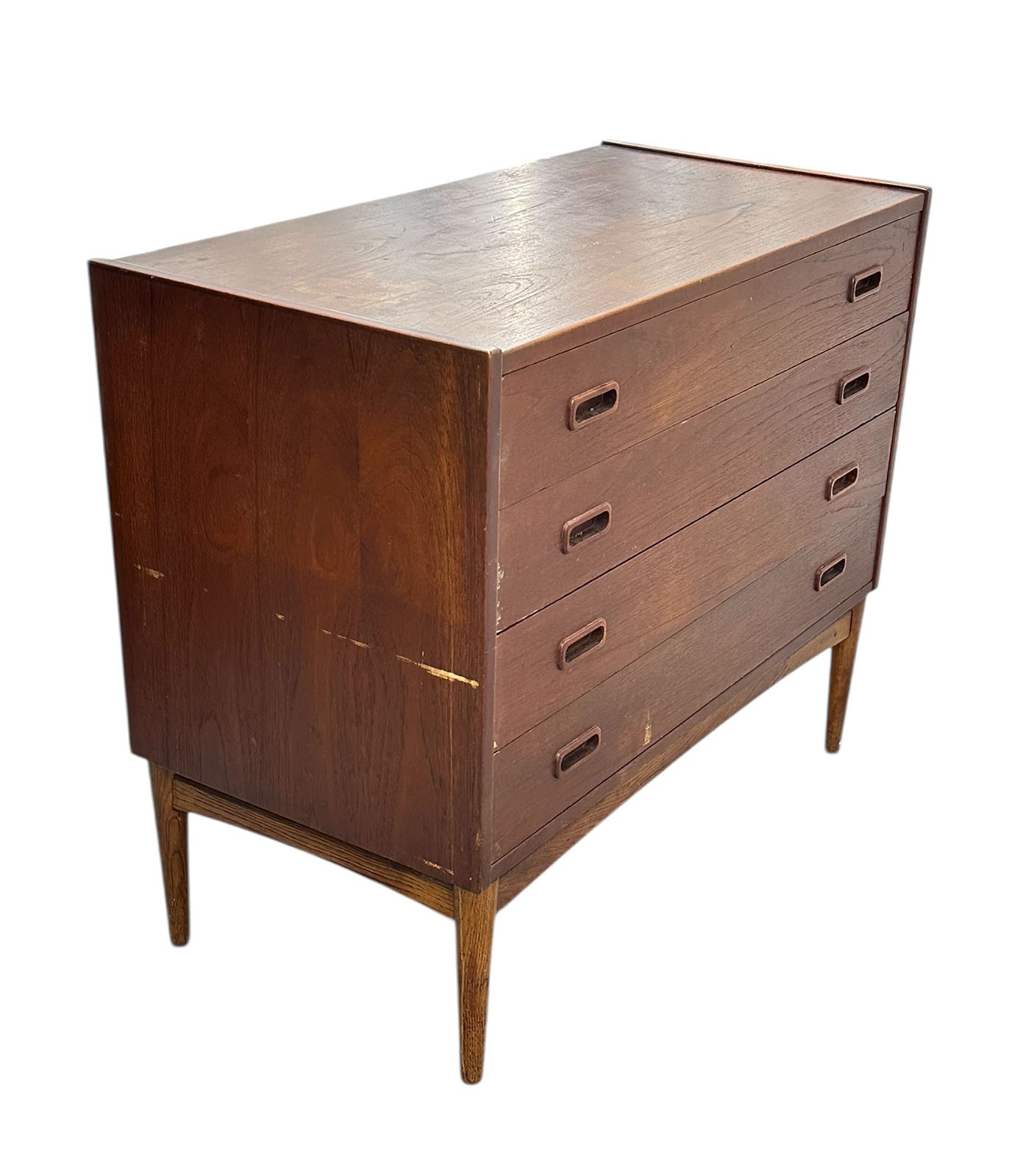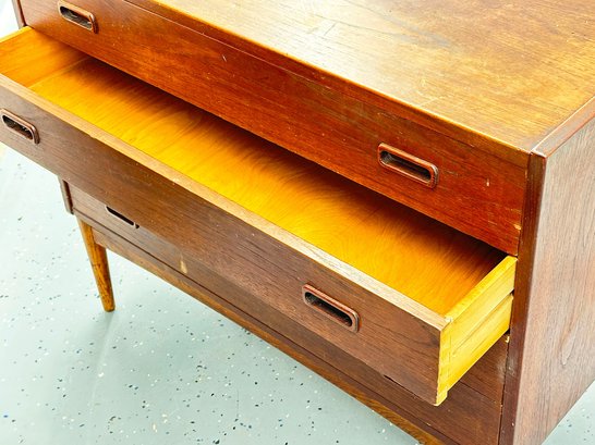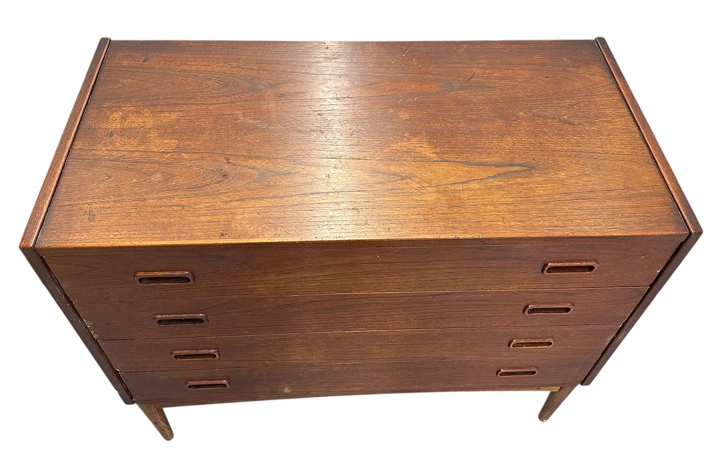Vintage 1960's Danish Modern 4-Drawer Dresser. 36"w x 18"d x 30.5"h. Some marks, finish wear, and paint spots.