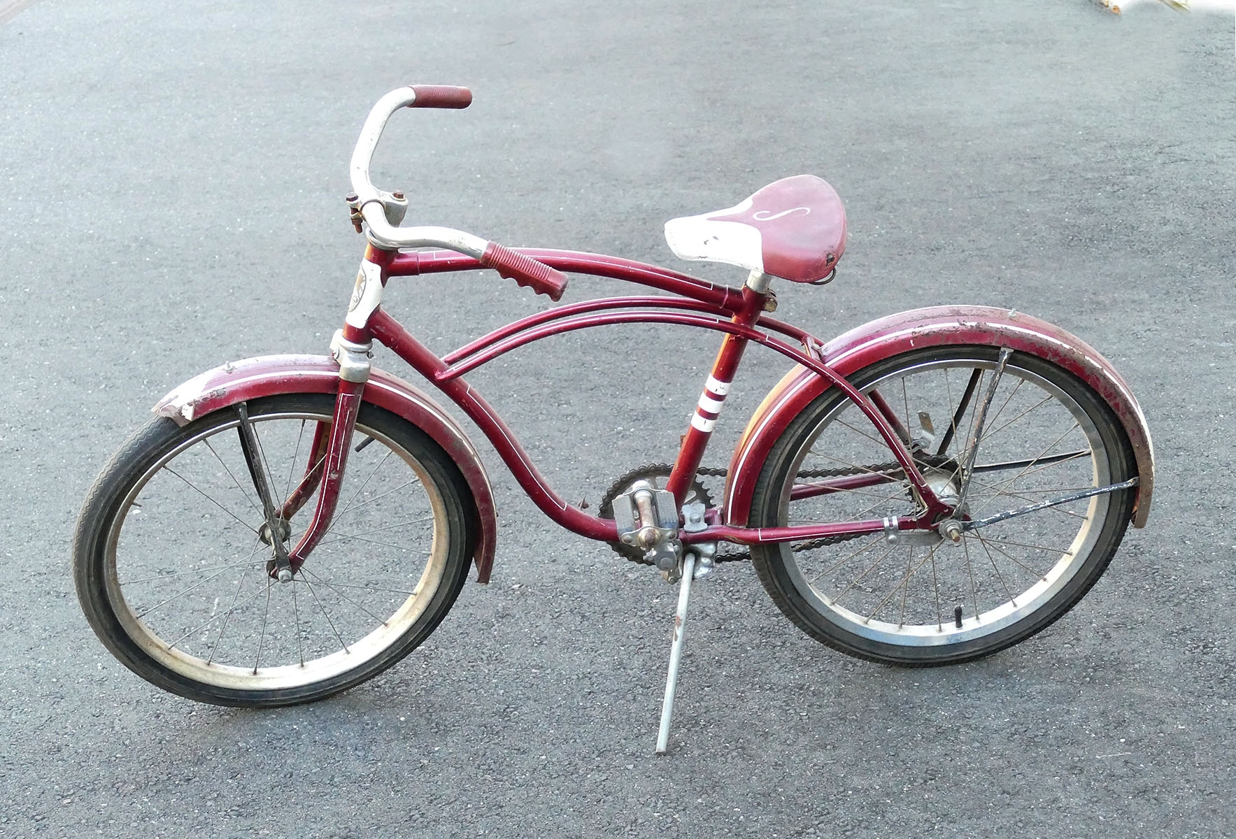 Vintage 1970's Tyler Boys Bicycle - In Red. 50" long, 27" seat height (adjustable). Wear and tear consistent with age and use.