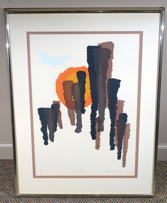 Vintage 1972 Deborah Tanen Lithograph Print. Signed and Numbered in pencil. Edition Size: 16. In a vintage aluminum frame. 22" x 28" (frame).