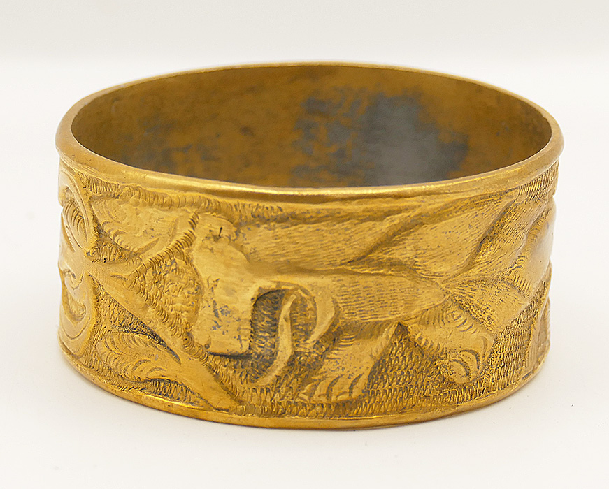 Vintage 1978 Metropolitan Museum Art (MMA) Gold Plated Bracelet. 2.75" diameter, 1.25" thick. In good condition with some rubber and surface wear (mostly interior).