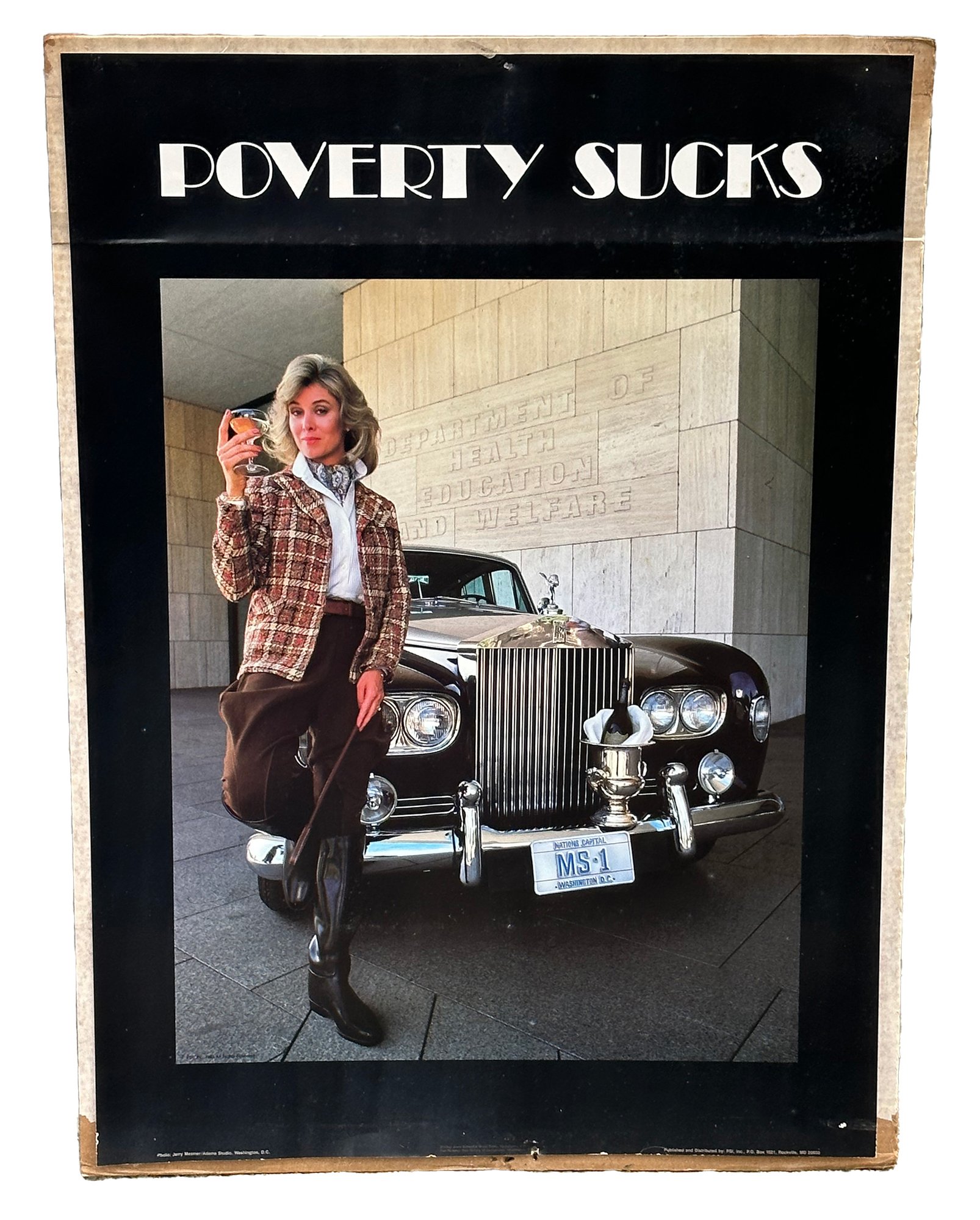 Vintage 1983 Jerry Mesmer Poster - Poverty Sucks. 20" x 28". In good condition with some wear and a pinhole. Classic 1980's poster. Great gift.