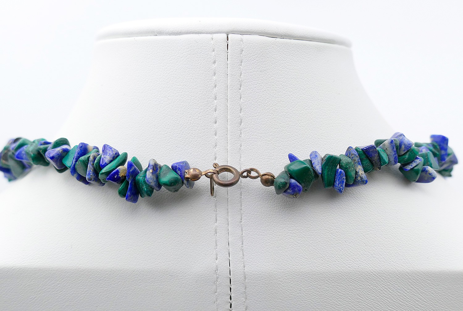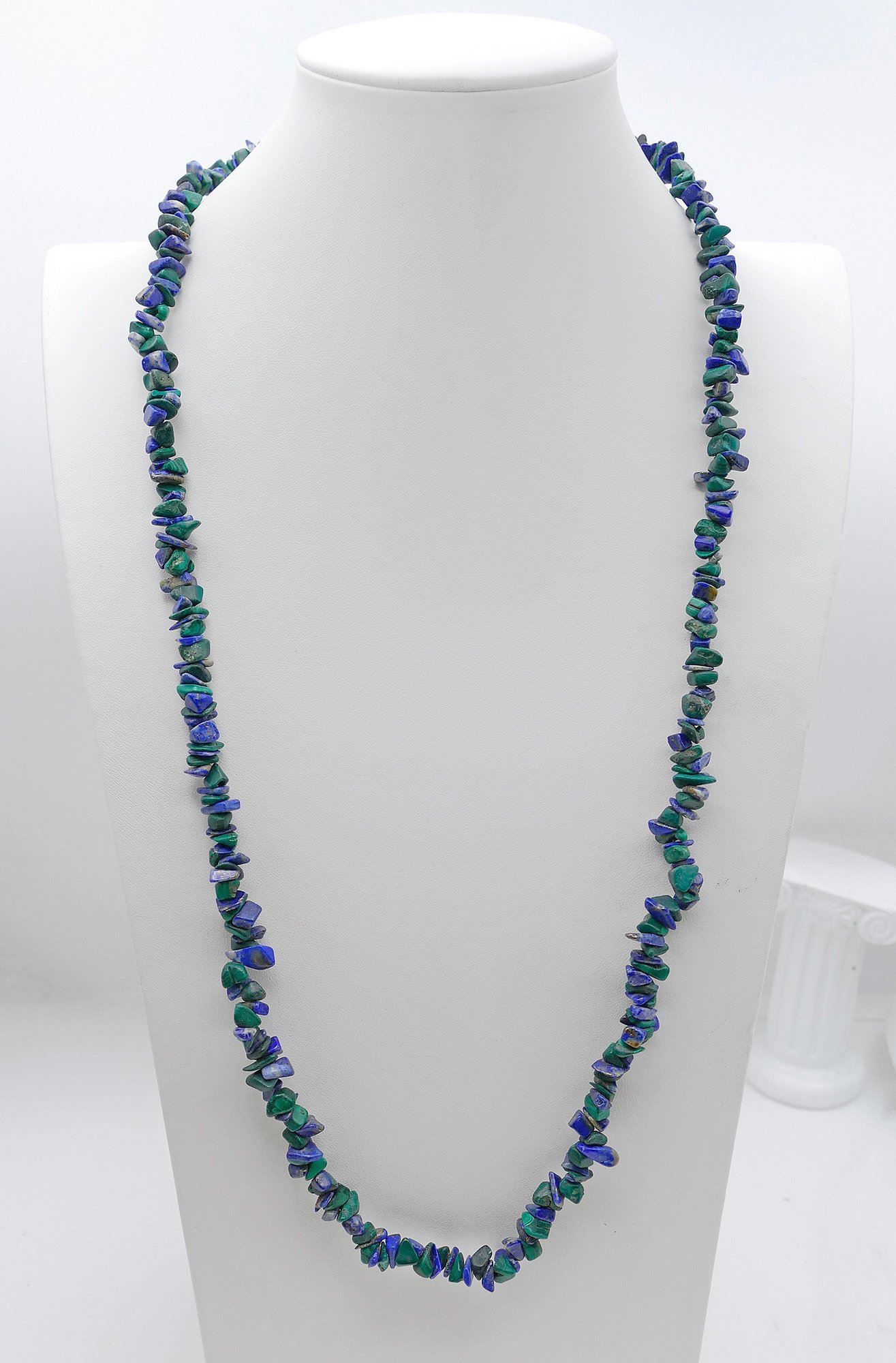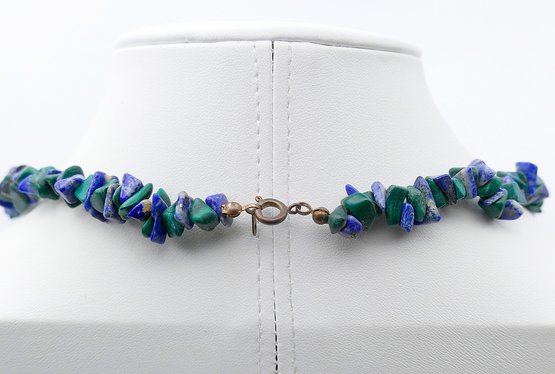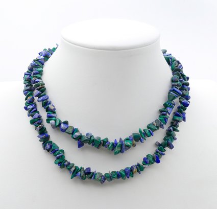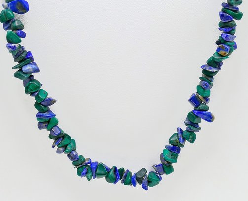 Vintage 29" Lapis and Malachite Chip Necklace. In Good Condition.