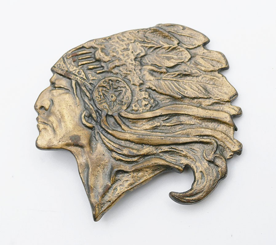 Vintage Brass Native American Chief Belt Buckle. 1970's. In Very Good Condition. 3" x 2.75".