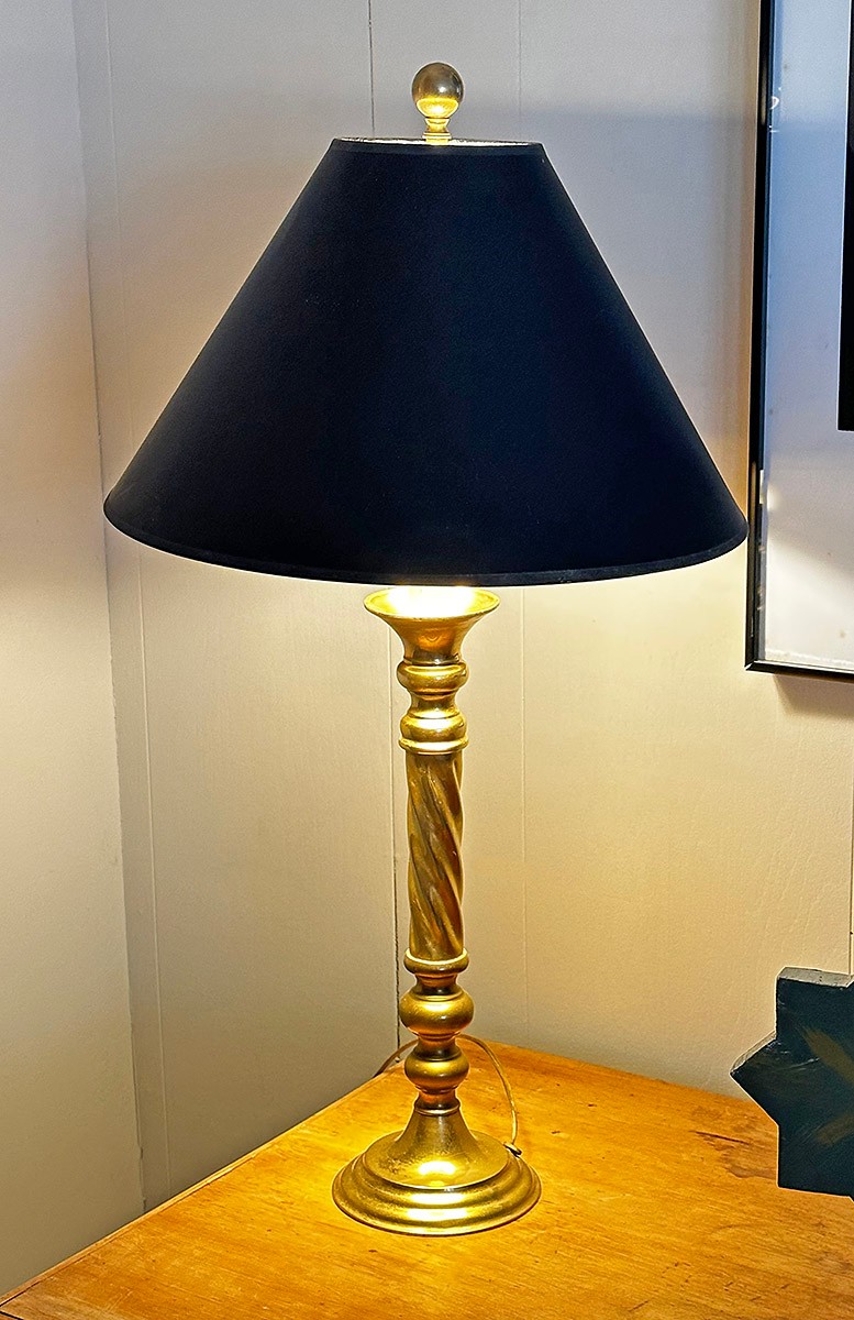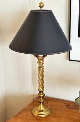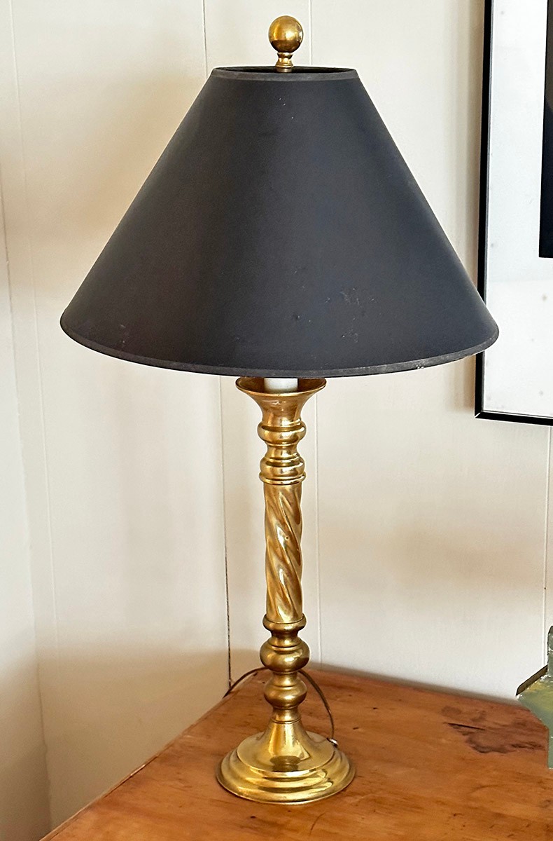 Vintage Brass Table Lamp. 30" Tall. The lamp is in very good condition; the shade has some wear and tear.