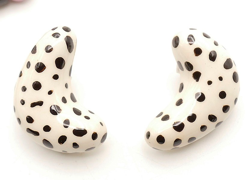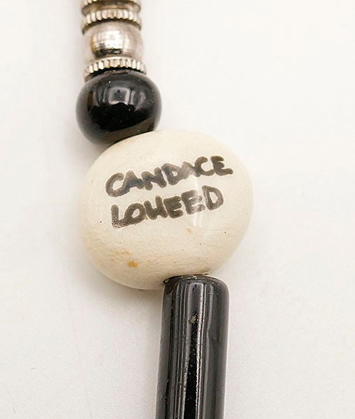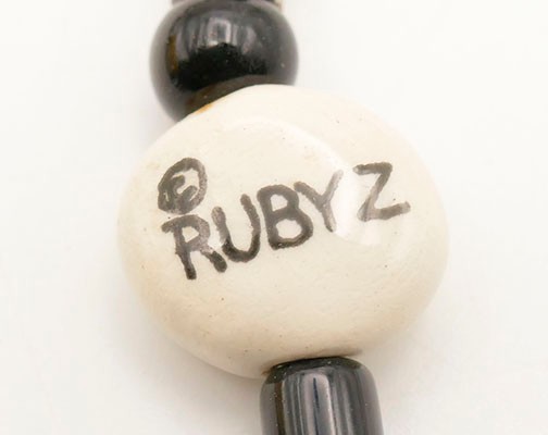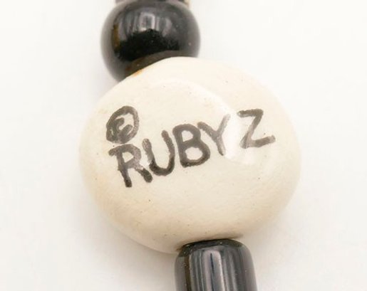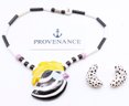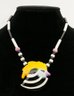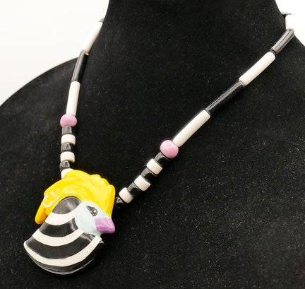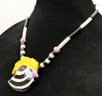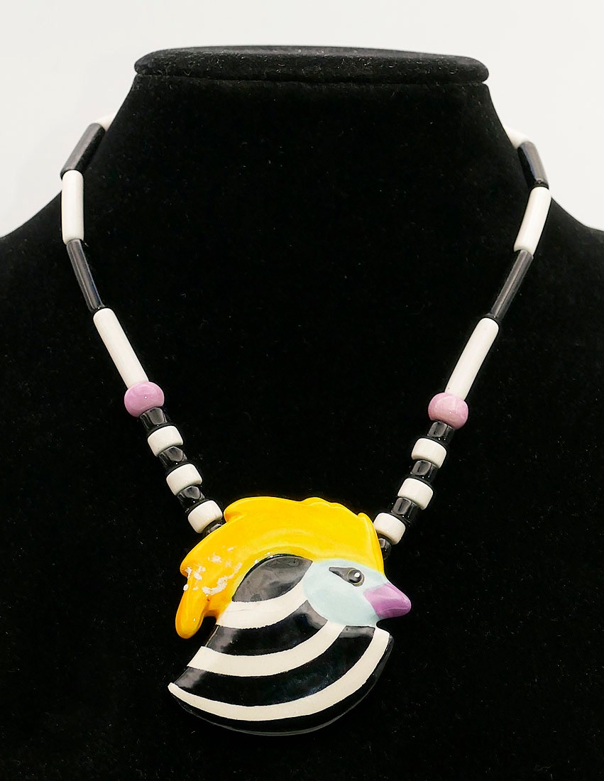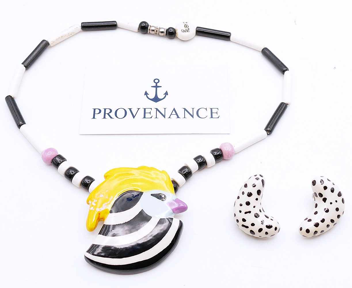 Vintage Candace Loheed / Ruby Z Ceramic Necklace & Earrings. The bird design necklace is 20" long signed on a bead near the clasp. The earrings have a cow pattern and are 1.5" long. The necklace has some light crazing, other they're in good condition.