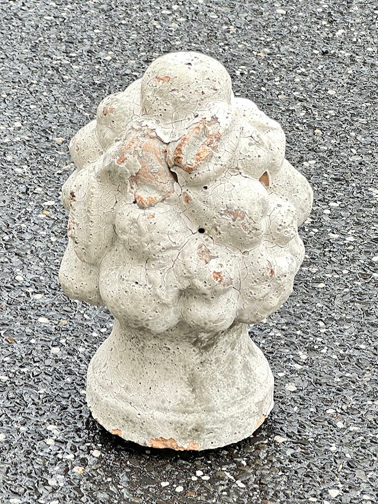 Vintage Cast Stone Fruit Bowl Garden Finial. 11"tall x 7"diameter. Some wear and weathering.